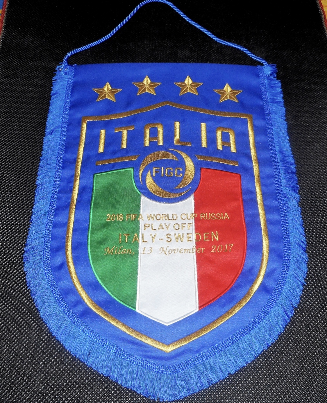 I due gagliardetti richiamano la sfida e quello della partita contro la Svezia che ci estromise dai mondiali di Russia sia da monito affinché gli azzurri non inciampino per la seconda volta…