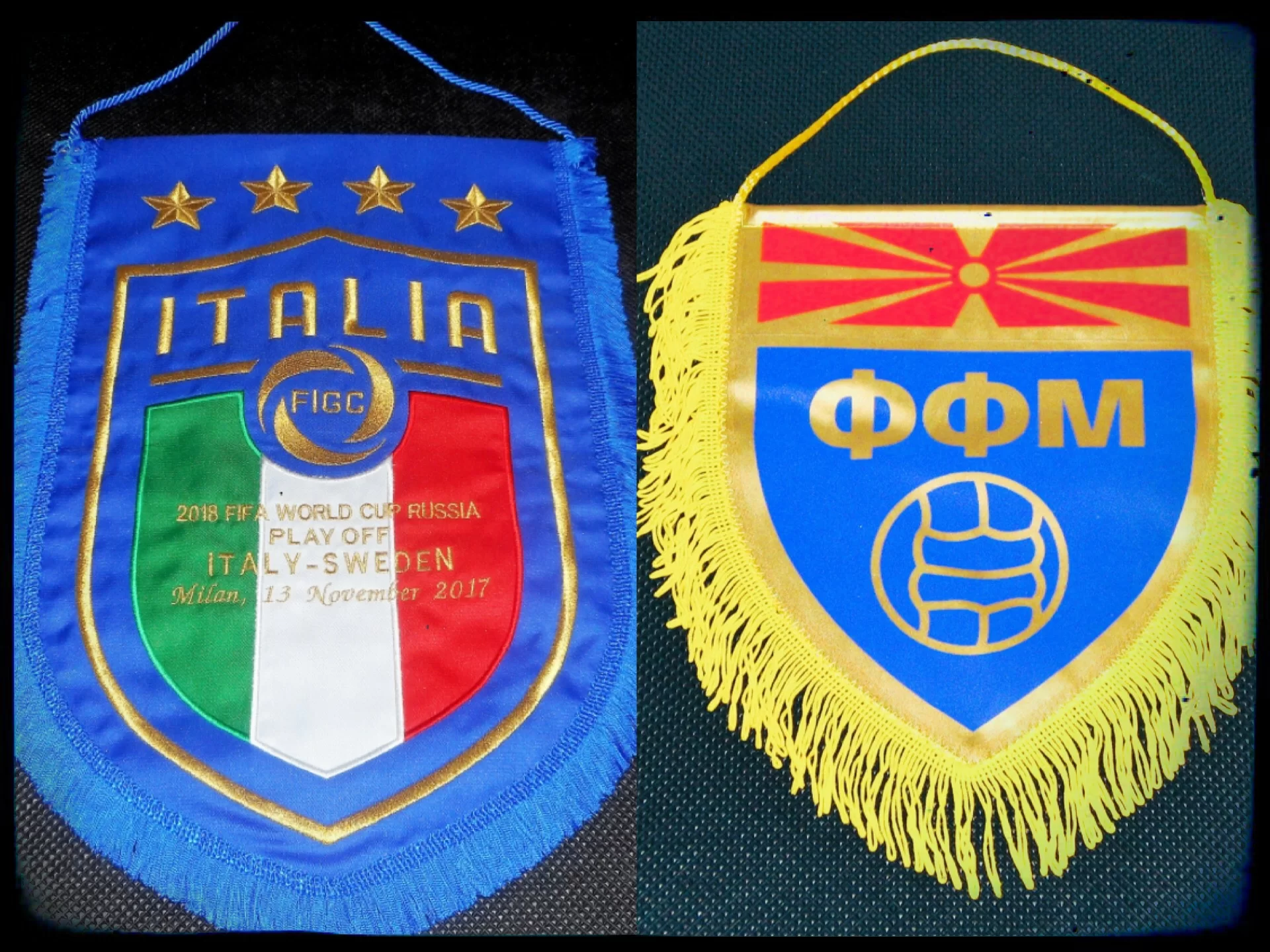 I due gagliardetti richiamano la sfida e quello della partita contro la Svezia che ci estromise dai mondiali di Russia sia da monito affinché gli azzurri non inciampino per la seconda volta…