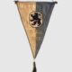 Il leone rampante nero che si staglia dal gagliardetto venne scelto sin dalle origini traendolo dai simboli araldici bavaresi più diffusi. Per ironia della sorte, nel corso degli anni, si resero necessarie molteplici revisioni a tale simbolo anche per variarlo rispetto all’analoga simbologia utilizzata da una ben nota marca di birra. Oltre allo stemma sulla fronte, questo gagliardetto riporta sul retro l’immagine di un altro simbolo di Monaco di Baviera ovvero il monaco che tutt’oggi è parte dell’araldica cittadina.