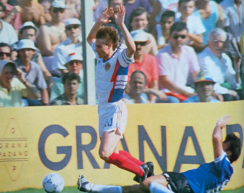 “L’estate si è arroventata. Nel pomeriggio del 30 giugno l’Argentina e la Jugoslavia giocano schiacciate da un’afa strangolante. Il duello è tra Diego Maradona e Dragan Stojkovic. C’è el Diez che gioca con la caviglia curata come una reliquia dal suo preparatore personale, Fernando Signorini. Maradona non ha la maschera sofferta che gli era rimasta addosso prima e durante la partita con il Brasile, fino alla catarsi del passaggio vincente per il gol di Caniggia. Sa, però, che la forma è oscillante e che le gambe si cuoceranno sotto il sole di Firenze. Stojkovic, nell’altro campo, lo guarda come fanno tra di loro i poeti che gorgheggiano versi ugualmente soavi. Ivica Osim ha costruito bellezza della Jugoslavia, infischiandosene delle chiacchiere girate nei suoi confronti. Sul ct, infatti, se ne erano sentite di ogni genere, prima dell’approdo ai quarti. Pure che fosse un ubriacone capace di scolarsi ripetute bottiglie di whisky in una sola sera. Osim deve pensare a mettere un freno a Maradona, quel che non è riuscito a fare a sufficienza Sebastião Lazaroni. Il resto toccherà a Stojkovic, di cui, su “La Stampa”, Curzio Maltese scrive: “È un re anarchico, un serbo orgoglioso, l’unico possibile capo di una Jugoslavia che rispecchia in tutto e per tutto la Babele politica e razziale in cui si dibatte la nazione. La squadra di Osim, mappa fedele delle divisioni etniche, è spaccata da tempo: i fantasiosi serbi contro i cupi croati; gli impenetrabili montenegrini contro gli zingari dalmati. Lui supera le divisioni facendole esplodere con innato gusto della provocazione. Un episodio: nel primo tempo di Spagna-Jugoslavia per una volta decide di non tirare in porta una punizione e passa indietro. Arriva Brnovic, broccaccio della peggior specie, e spara una badilata in curva. Stojkovic, in mondovisione, si ficca lemani tra i capelli, poi si volta e gli fa: «Scusa, non m’ero accorto che eri tu…». I compagni ingoiano amaro ma sono costretti a perdonarlo: se sono ancora qui è merito suo. La mimica irriverente e guascona, questa vanteria da timido, il profilo aguzzo mascherato dagli occhiali da sole e dal sorrisetto sfottente”