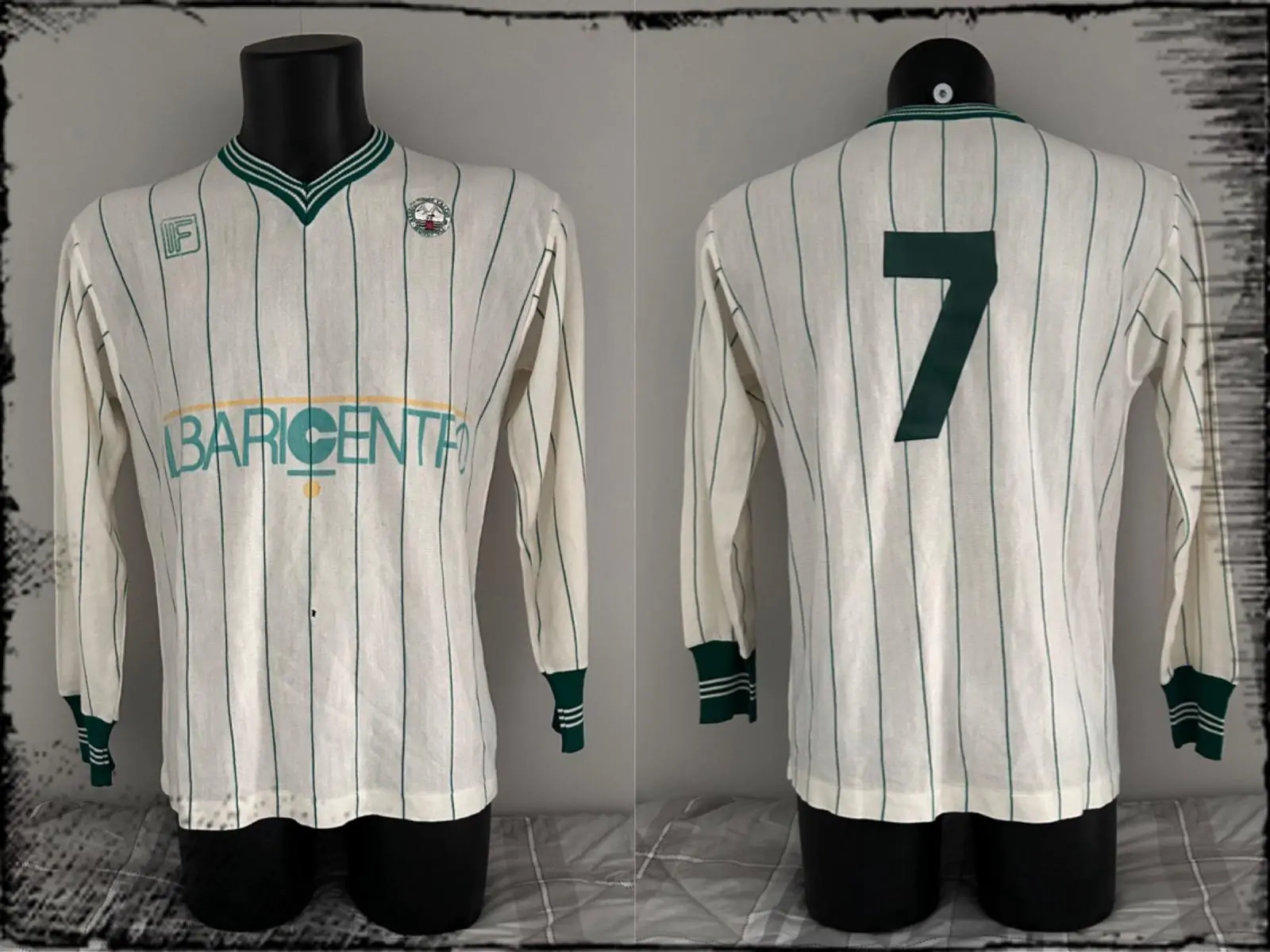 Al centro della maglia, troviamo lo sponsor commerciale “Il Baricentro”, un centro commerciale locale inaugurato proprio nel 1986.