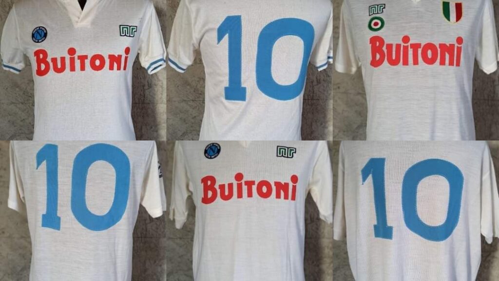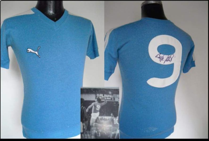 La domanda più importante, da fare all’amico Nino, riguarda i pezzi migliori e quelli ancora mancanti … “A volte il valore affettivo conta molto di più del valore economico. Io il sogno più grande l’ho realizzato quando ancora non collezionavo. Incontrai Maradona che venne a Napoli e ho un gagliardetto firmato da lui e guai a chi me lo tocca. Ho le maglie di Mancini e di Totti. Ho avuto la fortuna di incontrare sia Mancini che Totti attraverso amicizie in comune e mi sono fatto firmare le casacche. Dal 1980 al 2020 ho tutte le maglie: prima, seconda e terza. Ultimamente ho preso una Latte Berna rossa a cui stavo dietro da venti anni. Adesso per collezionare ci vogliono molti soldi, c’è tanta concorrenza. Io ad esempio avevo comprato una maglietta bianca del ’76, Coppa Italia. Era uno dei miei tanti sogni ma, dopo averla comprata, ho deciso di venderla perché il prezzo mi sembrava eccessivo per una maglietta, come se fosse uno schiaffo in faccia alla miseria. Mi importa essere obiettivo. Adesso ho trovato perfino una 1980/81 col colletto. La Cirio gialla è l’unica che mi manca, ma per me costava troppo”.