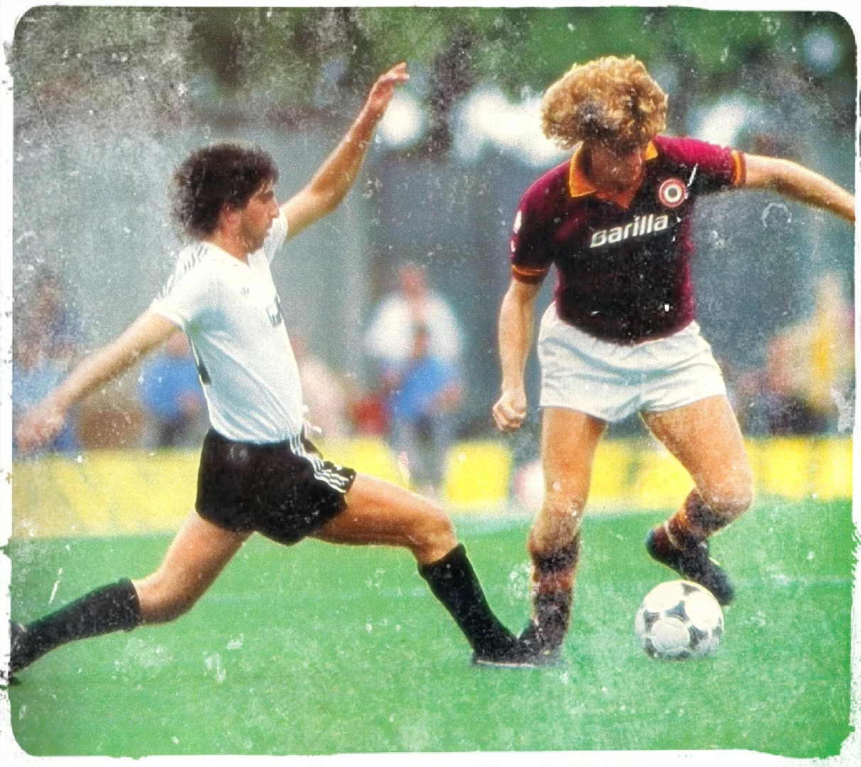 […] “Tutti i giorni erano belli perché eravamo un gruppo di amici, ricordo in particolare le sfide con la Juve. In quella nell’anno del tricolore segnai mentre l’anno dopo ho saltato Platini in pallonetto e regalato la palla a Pruzzo per la storica rovesciata al 90’. Festeggiare da romanista lo scudetto dopo oltre 40 anni è stato incredibile”.