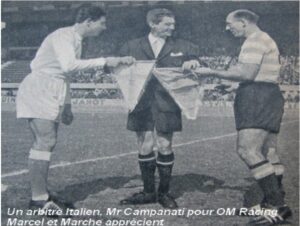 Il fatto viene spiegato attingendo da un sito dedicato all’O.M. (www.om4ever.com) in cui è presente un articolo di presentazione di questa partita. In merito alla direzione dell’arbitro italiano ci fu un accordo tra le Federazioni calcistiche italiana e francese. Le due federazioni concordarono un reciproco scambio di arbitri: a Campanati toccò O.M. – Racing Paris mentre al francese Guigue spettò la direzione di Genoa – Torino.