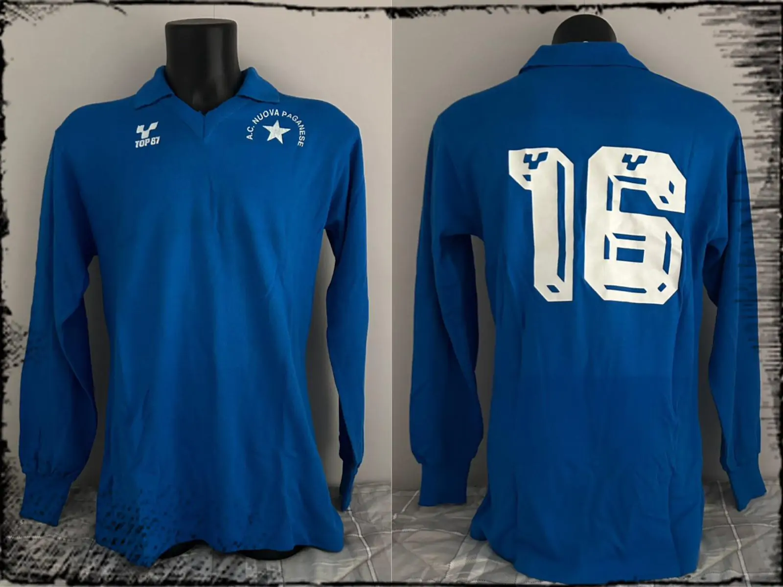 Si tratta di un modello invernale a manica lunga, molto semplice, senza sponsor commerciale ma con la scritta in vernicetta della denominazione della società, appunto la Nuova Paganese, in forma semicircolare accanto alla tradizionale stella presente sulle maglie del club.