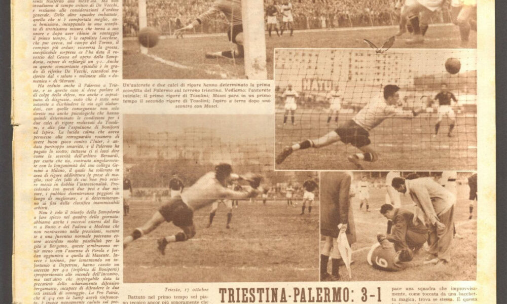 La cronaca del Calcio Illustrato relativa alla partita di andata tra Triestina e Palermo giocata nell’ottobre del 1948