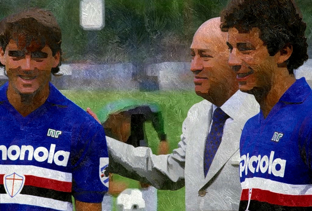 […] Prese Brady dalla Juve, Bordon a peso d’oro dall’Inter, Vierchowod e, dal Manchester City, Trevor Francis raffinato centravanti della nazionale inglese, ma acciaccatissimo. […] Prese Vialli per tre miliardi dalla Cremonese dopo sei ore di colloquio col giocatore senza mai parlare di soldi con lui. Mancò di prendere Roberto Baggio perché si trovava in America per un controllo medico e decadde l’opzione che aveva col Vicenza. […] Aveva 61 anni quando la Samp, con Boskov in panchina, vinse il campionato dopo tre Coppe Italia e la Coppa delle coppe (26 aerei di tifosi a Göteborg per la finale contro l’Anderlecht). […] Nessun calciatore voleva andarsene dalla Samp, era come esser mandati via di casa.