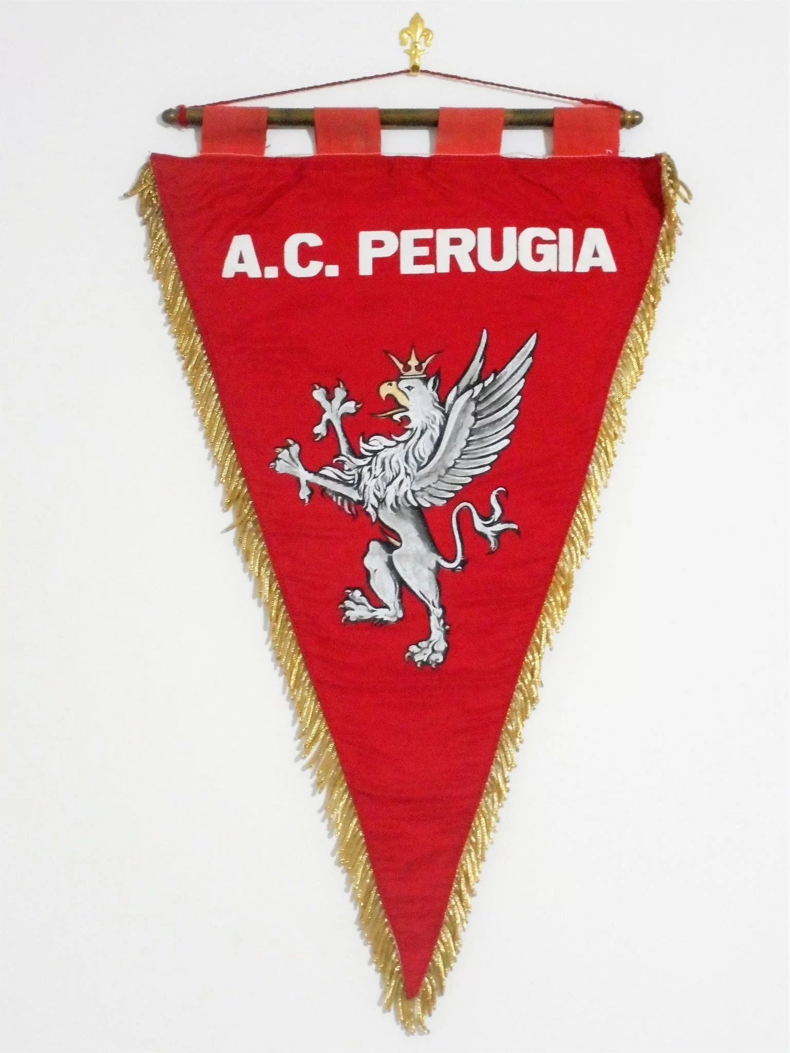 I settanta furono gli anni della svolta per la squadra con l’avvento del Presidente D’Attoma e con tanti nuovi campioni che arrivarono. Solo per citarne qualcuno Pierluigi Frosio, il compianto Renato Curi e Paolo Sollier, l’attaccante “con il pugno alzato”. Con questo uomini il Perugia approdò in serie A, per la prima volta, dopo avere vinto il campionato di B della stagione 1974 – 1975. I gagliardetti in uso avevano, in primo piano uno splendido grifone dipinto a mano riportato su uno sfondo rosso intenso.