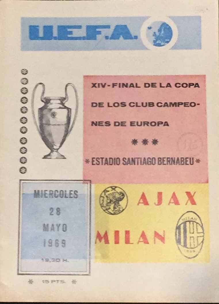 L’incontro della finale, fu giocato il 28 maggio del 1969. Complice il cattivo tempo, dei giorni e delle ore precedenti, allo stadio Bernabeu di Madrid, in una Spagna che era ancora franchista, non ci fu il pubblico delle grandi occasioni. Il Milan scese in campo con uno schieramento fatto di quattro difensori, davanti a loro due centrocampisti, uno con compiti più prettamente difensivi e un altro anche con funzioni di impostazione, e poi quattro attaccanti: un trequartista/regista, un centravanti e due ali.