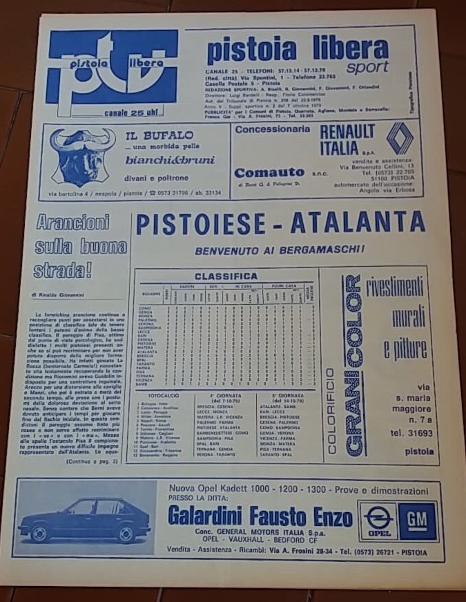 GLIEROIDELCALCIO.COM (Luca Negro) – Sono passati 40 anni da quel 7 ottobre 1979, da quella quarta giornata del campionato di serie B. Da quel giorno in cui si andavano a incontrare due belle realtà di provincia. Una da poco costretta a ripartire dalla serie cadetta in seguito alla retrocessione e considerata una “grande” fra le “piccole”. L’altra, una sorprendente compagine toscana in maglia arancione che sarebbe poi andata a scrivere la pagina più bella della sua storia, ma che ancora non lo sapeva e ancora pochi andavano a ipotizzarlo, soprattutto allo scoccare del 90° minuto di quel Pistoiese-Atalanta di quel 7 ottobre 1979. Mentre la Pistoiese andava costruendo un gruppo esperto e coriaceo dall’estate 1978 in cui approdarono in maglia arancio Moscatelli, Arecco, Rognoni e Saltutti fino all’estate di quel 1979 in cui alla rosa vennero aggiunti Berni, Cesati, Marcello Lippi e il giovane di belle speranze Francesco Guidolin, l’Atalanta affrontava una difficile rifondazione affidata all’allenatore Giovan Battista Rota detto Titta, confermato nonostante la retrocessione. In estate furono ceduti Luciano Bodini, Cesare Prandelli, Domenico Marocchino, Carlo Osti oltre ad Andena, Mastropasqua e Pircher. Erano stati integrati in rosa giovani di belle speranze provenienti dal settore giovanile. Uno di questi Daniele Filisetti, terzino marcatore, molto ben concentrato sull’uomo e dotato di ottima elevazione. Uno tosto insomma, forgiato in Val Seriana, tutto impegno e abnegazione. Quel giorno di ottobre di 40 anni fa, fu protagonista. La Pistoiese, come gli orobici, non aveva iniziato bene la stagione e seppur nel campionato precedente si piazzò al quinto posto, non godeva di grande considerazione in un campionato, come quello di serie B 79-80, che presentava squadre di ottimo livello e di piazze importanti. Oltre alla già citata Atalanta, c’erano infatti le genovesi, il Verona, che iniziò benissimo per poi perdersi, il Vicenza, fra le favorite, poi lombarde rampanti come Como, Brescia e Monza, le romagnole Spal e Cesena, insomma un campionato davvero impegnativo. Nello scenario appena descritto, l’Atalanta andava dunque cercando, allo stadio comunale di Pistoia, la prima vittoria in campionato dopo due pareggi e la sconfitta all’esordio sul campo del Bari. Mentre la Pistoiese aveva vinto col Palermo l’unica gara interna disputata, perdendo invece a Taranto all’esordio e pareggiato il derby col Pisa in trasferta. Quando le ambizioni dell’Atalanta sembravano barcollare dinanzi ai colpi inferti dalle azioni offensive della Pistoiese, al 40° minuto, un episodio cambiò le sorti del match. A dieci metri dal vertice sinistro dell’area di rigore toscana, l’arbitro Panzino di Catanzaro fischiò fallo di Rognoni su Rocca. La punizione calciata da Festa trovò pronto all’incornata Daniele Filisetti, allora ventenne, che realizzò così il suo primo gol da professionista. Gol decisivo, perché il forcing della Pistoiese si scontrò ripetutamente contro i guanti di Maurizio Memo, prelevato in estate dal Bologna e che risultò a fine partita migliore in campo. Aiutato anche dal destino Memo a mantenere la porta inviolata, perché a cinque minuti dalla fine, infatti, Saltutti calciò fuori un rigore concesso per atterramento dello stesso da parte di Mei. 1-0 finale in favore della Dea dunque e prima vittoria in un campionato che avrebbe visto la Pistoiese protagonista di un secondo posto e di una storica promozione, l’unica in serie A, mentre per l’Atalanta dei giovani, tra cui Filisetti, goleador per un giorno, costretto al cambio per un infortunio in seguito ad uno scontro con Mosti al 45° minuto di quel 7 ottobre 1979, un campionato sofferto concluso poi al nono posto e una tortuosa strada verso la risalita. A raccontare oggi quel giorno di 40 anni fa Daniele Filisetti, che si è gentilmente concesso alle mie domande: