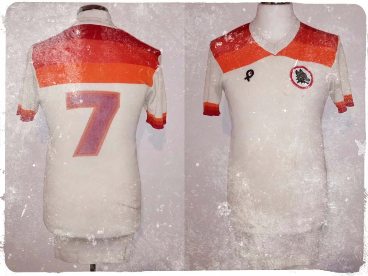 “Ma c’è un tifoso”, ci racconta Daniele Ceccarelli, “tal Mario Tagliaferri, che riesce prima del giro di campo a ricevere da Conti la maglia, così che lo stesso viene immortalato nelle foto, esclusivamente con il “sopra tuta” della Pouchain. Ora questa maglia appartiene alla mia collezione. Dalle foto e le ricerche effettuate confrontandomi anche con altri collezionisti, è emerso che la partita venne disputata con alternanza di mute con due ‘P’ di Pouchain differenti.