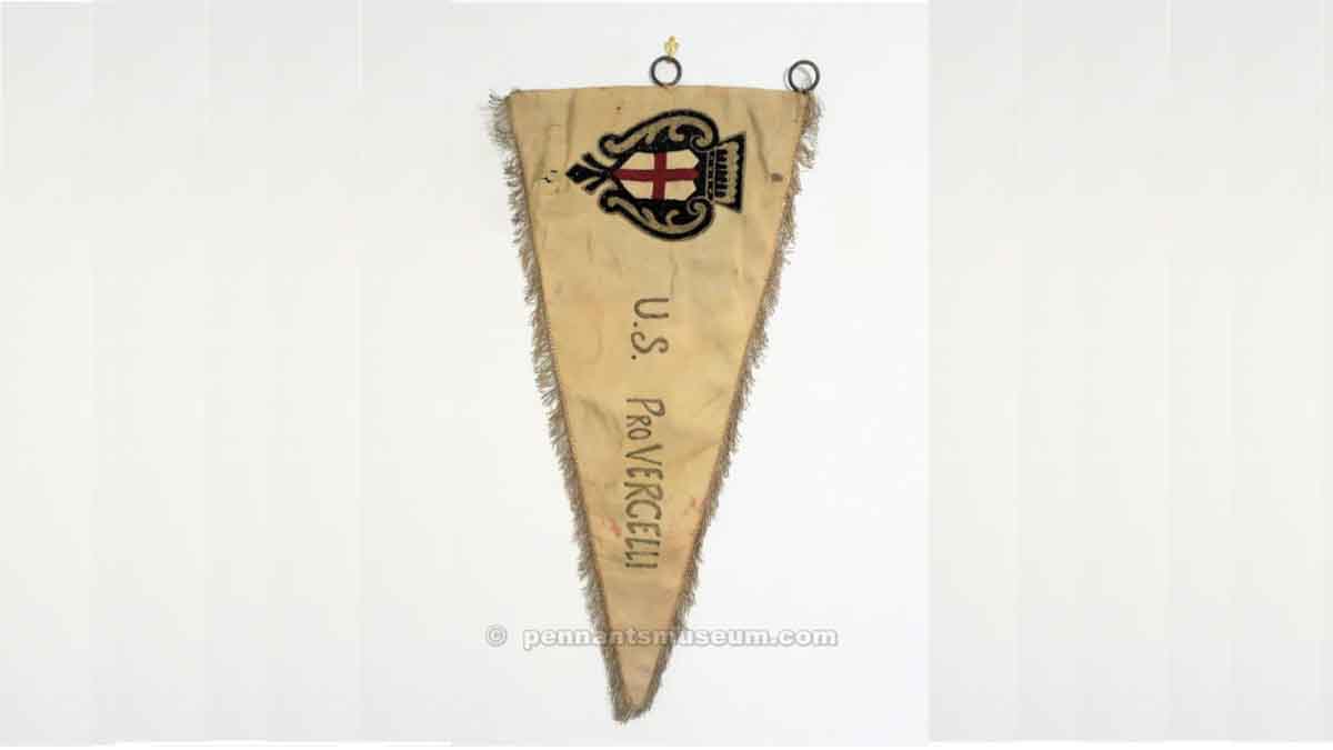 Nel primo ventennio del XX° secolo la Pro Vercelli fu una delle migliori squadre italiane e conquistò il titolo di Campione d’Italia per sette volte. I “leoni”, così come venivano raffigurati dal geniale maestro Carlin, utilizzavano negli anni venti, tra gli altri, vessilli portati da un alfiere che precedeva l’ingresso in campo dei calciatori prima dell’inizio della partita. Negli anni cinquanta, invece, si passa a un gagliardetto tradizionale con i ricami del bellissimo stemma della squadra e della sua denominazione.