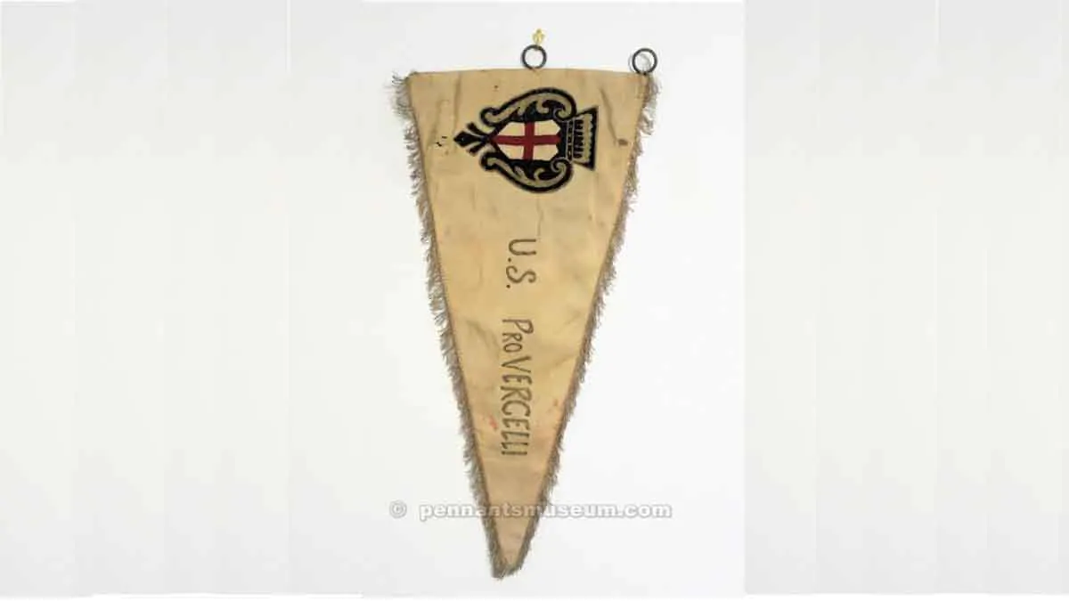 Nel primo ventennio del XX° secolo la Pro Vercelli fu una delle migliori squadre italiane e conquistò il titolo di Campione d’Italia per sette volte. I “leoni”, così come venivano raffigurati dal geniale maestro Carlin, utilizzavano negli anni venti, tra gli altri, vessilli portati da un alfiere che precedeva l’ingresso in campo dei calciatori prima dell’inizio della partita. Negli anni cinquanta, invece, si passa a un gagliardetto tradizionale con i ricami del bellissimo stemma della squadra e della sua denominazione.