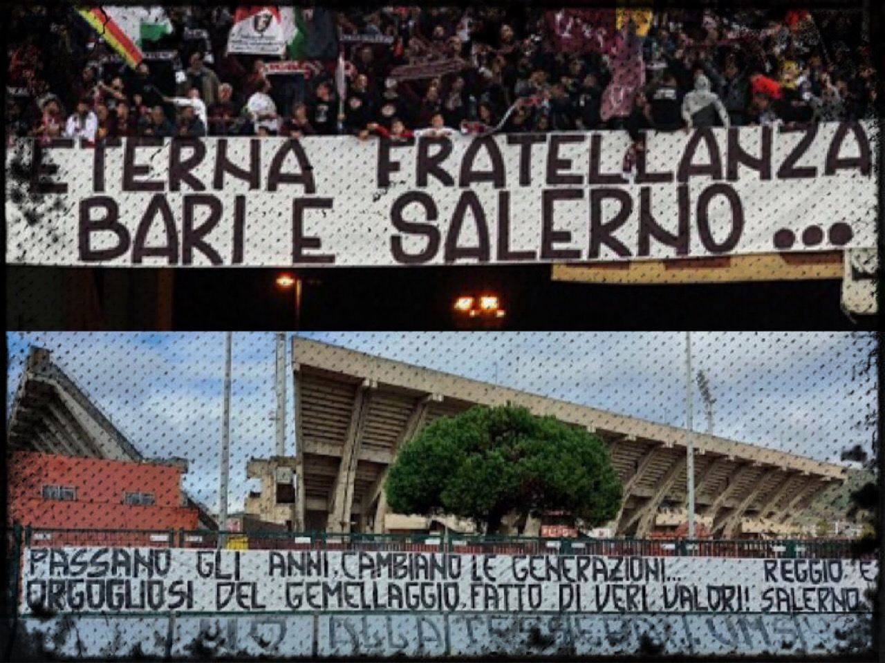 Inutile dire che quando si incontrano Bari e Salernitana, e ovviamente una delle due con la Reggina, sugli spalti è festa grande e anche gli incassi allo stadio raddoppiano, regalando colpi d’occhio degni di palcoscenici più prestigiosi. Fra le pagine più belle di questo romanzo da spalti che Bari e Salerno continuano a scrivere a due mani dal 1983, ci sono due momenti da menzionare in particolare. Una è sicuramente la coreografia della stagione 2015-2016 dedicata dai tifosi granata ai cugini baresi. Il 26 marzo 2016 all’Arechi di Salerno andava in scena Salernitana-Bari gara valida per la trentatreesima giornata di B, i pugliesi si imponevano 3-4, ma a rubare l’attenzione era la coreografia mobile ideata dai tifosi campani che lasciava a bocca aperta anche i telecronisti Sky.