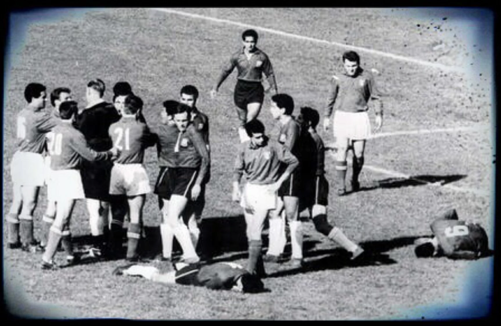 Come dicevo, quanto vi ho rappresentato è accaduto, seppur con diversi protagonisti, quasi sessant’anni fa, alla vigilia di una celebre – in negativo – partita dei campionati del mondo di Cile ’62, passata alla storia come “Battaglia di Santiago”.