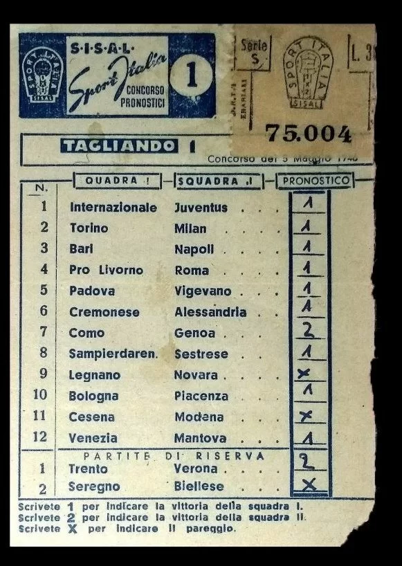 Fu l’inizio di una rivoluzione nella storia dei giochi popolari alla portata di tutti, l’inizio di un fenomeno di costume legato allo sport più amato, il calcio, nell’Italia del dopoguerra e della ricostruzione, della voglia di fare, di intraprendere di aprirsi di nuovo al mondo e alla modernità, di sognare. Di “vincere alla Sisal” con l’attesa dei risultati delle partite, il rito della passeggiata domenicale con la radiolina incollata all’orecchio e la schedina in tasta.