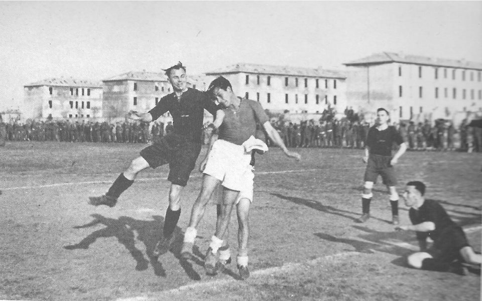 GLIEROIDELCALCIO.COM (Francesco Fanini) – Quella che andremo di seguito a rievocare, parafrasando il titolo di una celebre canzone popolare di Liberazione, è la cronaca di alcuni fatti accaduti nel corso del Campionato di Serie C 1945/46, torneo che il Rimini disputò tra le fila del Girone I- Nord e che concluse classificandosi al 6° posto. Con 396 bombardamenti aerei, navali e terrestri subiti e l’82% delle proprie costruzioni lesionate in maniera grave o irrecuperabile, la Rimini che usciva drammaticamente dal secondo conflitto mondiale si presentava come un enorme cumulo di macerie e di devastazioni. Il sacrificio immane pagato in termini di distruzione e di perdite, lasciò il passo ad una progressiva, commossa e laboriosa opera di ricostruzione e la città, cui venne conferito a distanza di alcuni anni con Decreto del Presidente della Repubblica del 16/01/1961 il patrio riconoscimento della Medaglia d’oro al valore civile, diventò fiero simbolo di volontà e di lotta. Fare sport in un contesto ambientale ed emotivo quale quello dell’immediato dopoguerra equivaleva a mettersi alle spalle i drammi del passato e, dopo due anni di sosta forzata dal ’43 al ’45, dare continuità ad una attività agonistica che nelle ultime stagioni aveva visto la locale squadra di calcio militare oramai stabilmente in terza serie. Il primo campionato del dopoguerra si apprestava dunque a partire tra mille difficoltà, tra evidenti carenze di mezzi e con le strutture dello stadio ridotte ai minimi termini, ma anche il pallone ebbe la forza di rinascere dalle rovine. Lo fece sotto la presidenza di Armando Morri, ex portiere del cosiddetto “Rimini dei romani”, successivamente passato a ricoprire cariche dirigenziali in seno alla società, con la guida tecnica dell’allenatore Boni e con la gloria olimpionica locale Romeo Neri come preparatore atletico. Quel torneo si rivelò ben presto alquanto combattuto, con la presenza di numerosissimi e sentiti derby emiliano-romagnoli, quali quelli che vedevano contrapposte ai biancorossi Ravenna, Riccione, Carpi, Lugo, Centese, Imola… Il Rimini seppe mettere in campo una compagine coriacea e agguerrita, accompagnata e sostenuta da una tifoseria numerosa e appassionata, emblema di una popolazione ferita profondamente ma che tentava lentamente di riappropriarsi dei propri “divertimenti” e dei propri rituali, quasi a voler esorcizzare le brutture della guerra. Ma veniamo all’episodio, nel vero senso del termine “esplosivo”, che caratterizzò in maniera indelebile quella rocambolesca stagione. Nel dicembre del ’45, il giorno 16, alla settima giornata di un torneo che sino ad allora si stava profilando estremamente equilibrato, andò in scena al “Polisportivo” lo scontro al vertice tra i biancorossi e il Carpi. Campana, Ballardini, Pesaresi, Cecchini, Fabbri I°, Fabbri II°, Massari, Guacci, Comotti, Biagiotti, Manzelli: questo l’undici di partenza. Al termine di una prima frazione di gioco sostanzialmente combattuta ad armi pari, il risultato era ancorato sullo 0-0; poi sin dai primi minuti della ripresa si registrò una notevole pressione da parte degli uomini di casa nel tentativo di violare la porta avversaria, sul punto di capitolare da un momento all’altro. Proprio al culmine del forcing prodotto dalla squadra riminese, sospinta da un pubblico in ebollizione, accadde invece l’imponderabile. Da un corner a quanto pare inesistente decretato dal Sig. Pennazzi di Bologna a favore degli ospiti, scaturisce un batti e ribatti in area e tra un groviglio di gambe prende forma una beffarda carambola che deposita la palla nella rete difesa da Campana per il più classico degli autogol. La situazione precipita! Pubblico surriscaldato a pressare contro la recinzione e gazzarra in campo, col Rimini che rimane in dieci, penalizzato da una espulsione per le “inevitabili” proteste nei confronti della giacchetta nera. Feriti nell’orgoglio, i Biancorossi moltiplicano gli sforzi e si gettano all’attacco, ma anche in questo caso ogni tentativo di pervenire al pari viene frustrato da una seconda decisione del direttore di gara che non accorda un “gol-fantasma”, col numero uno emiliano che respinge la sfera probabilmente già oltre la linea di porta. È la fine! La rete non regge alla forza d’urto della folla inferocita che si riversa in campo. È letteralmente caccia all’uomo, volano colpi proibiti da tutte le parti; le cronache parlano di circa cinquecento persone entrate sul terreno di gioco costringendo l’arbitro, con le costole fratturate, ad una affannosa ritirata verso gli spogliatoi. L’epilogo. Già da qualche tempo il contingente polacco facente parte della Military Police dell’Ottava Armata (le truppe alleate entrate in città tra il 20 e il 21 settembre del ‘44) aveva fissato la propria base logistica tra le mura del Collegio d’infanzia “Pio Felice”, a ridosso di quella che attualmente è la “curva ovest” dello stadio Neri. Quel giorno i militari che assistettero alla scena dal loro presidio, temendo il peggio, pensarono bene di ristabilire l’ordine con alcune sventagliate di mitra che andarono a fendere l’aria sul “prato della Sartona”. Panico: fine delle ostilità e tutti di corsa a casa, col solo direttore di gara rimasto riverso sul terreno a leccarsi le ferite riportate nel cruento corpo a corpo. Ovviamente l’intera malefatta non passò inosservata alla commissione disciplinare della Lega che nell’occasione usò la mano pesante, comminando la squalifica del campo per un anno, con l’obbligo di disputare le restanti gare casalinghe sul neutro di Rovigo. Solo qualche mese dopo, una revoca dapprima parziale (disputa delle gare interne entro un raggio di 20 km.), quindi totale, permise di far riavvicinare il Rimini al proprio pubblico e di portare a termine quell’incredibile campionato, vinto in maniera altrettanto clamorosa dalla piccola Bondenese, in grado di beffare sul filo di lana