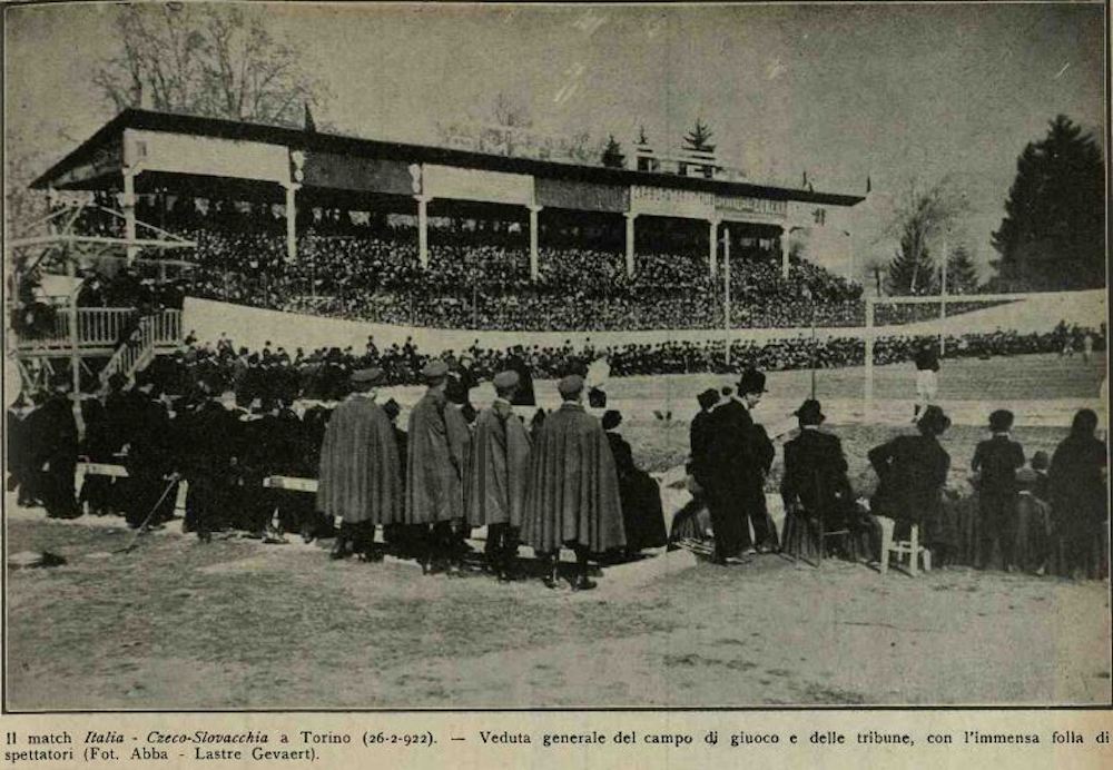 […] Come scrisse il quotidiano La Stampa, venne inaugurato il 24 Luglio 1920 alla presenza di un “pubblico numerosissimo”. […] Oltre alle biglietterie, il Motovelodromo era dotato di due tribune sui lati lunghi dell’impianto e di un campo da calcio all’interno dell’anello di pista. […] Il Motovelodromo non era utilizzato solo per le competizioni ciclistiche e motociclistiche. Il Torino Calcio vi disputò il campionato 1925/26; sempre qui giocò il Campionato di Divisione Nazionale 1944, torneo della Repubblica Sociale Italiana durante la Seconda Guerra Mondiale. […] Oltre al Torino, sul terreno di Corso Casale giocò due volte la Nazionale Italiana di Calcio, curiosamente sempre contro la Cecoslovacchia: la prima fu una amichevole, il 25 Febbraio 1922, che si concluse 1-1; la seconda, il 17 Gennaio 1926, terminò 3-1 per gli azzurri.