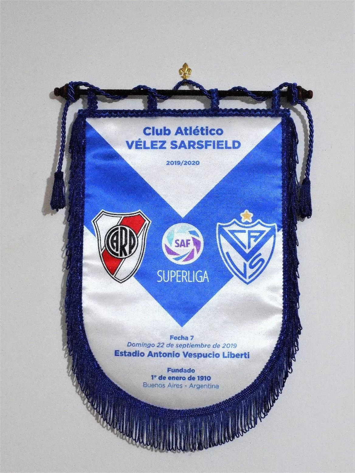 GLIEROIDELCALCIO.COM (Marco Cianfanelli) – Il gagliardetto di questa settimana celebra uno dei tanti derby cittadini di Buenos Aires. Quello tra i “millonarios” del River Plate e i cugini del Velez Sarsfield valevole per il campionato argentino denominato SuperLiga dopo che l’Associazione del calcio argentina decise, nel 2016, di avvallare la nascita di questa entità con l’onere di provvedere alla gestione delle due maggiori Leghe calcistiche nazionali. Il progetto venne poi ridimensionato e la SuperLiga gesti esclusivamente la Primera Division. La vita di questa Lega durò ben poco poiché nel febbraio del 2020 il presidente dell’AFA riconoscendo il fallimento del progetto, volto anche a promuovere all’estero il calcio argentino, ordinò un’inversione di rotta che comportò la nascita della Liga Profesional de Futebol.
