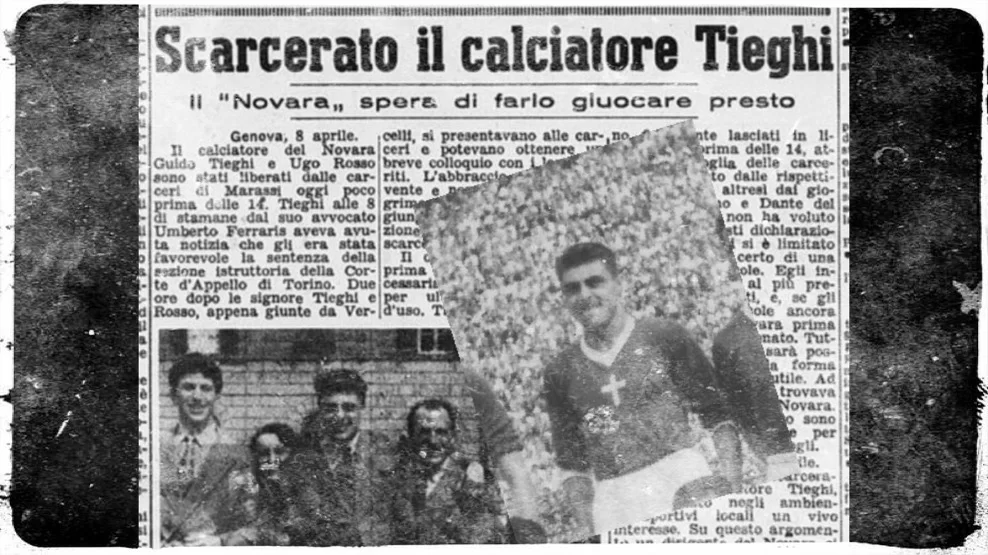 “Il calciatore del Novara Guido Tieghi e Ugo Rosso sono stati liberati dalle carceri di Marassi oggi poco prima delle 14. Tieghi alle 8 di stamane dal suo avvocato Umberto Ferraris aveva avuta notizia che gli era stata favorevole la sentenza della sezione istruttoria della Corte d’Appello di Torino. Due ore dopo le signore Tieghi e Rosso, appena giunte da Vercelli, si presentavano alle carceri e potevano ottenere un breve colloquio con i loro mariti. L’abbraccio fu commovente e non disgiunto da lagrime. Ma intanto tardava a giungere da Torino alla direzione delle carceri l’ordine di scarcerazione. Il dispaccio arrivava poco prima delle 11, ma era necessaria ancora qualche ora per ultimare le formalità d’uso. Tieghi e Rosso venivano finalmente lasciati in libertà poco prima delle 14, attesi sulla soglia delle carceri non soltanto dalle rispettive mogli, ma altresì dai giocatori Bergamo e Dante del Genoa. Tieghi non ha voluto fare ai giornalisti dichiarazioni di sorta. Egli si è limitato a dire che era certo di una sentenza favorevole. Egli intende riprendere al più presto gli allenamenti, e, se gli sarà possibile, vuole ancora giocare per il Novara prima della fine del campionato. Tutto dipenderà se gli sarà possibile raggiungere la forma necessaria in tempo utile. Ad attendere Tieghi si trovava pure un dirigente del Novara. Il calciatore e il Rosso sono partiti immediatamente per Vercelli assieme alle mogli.