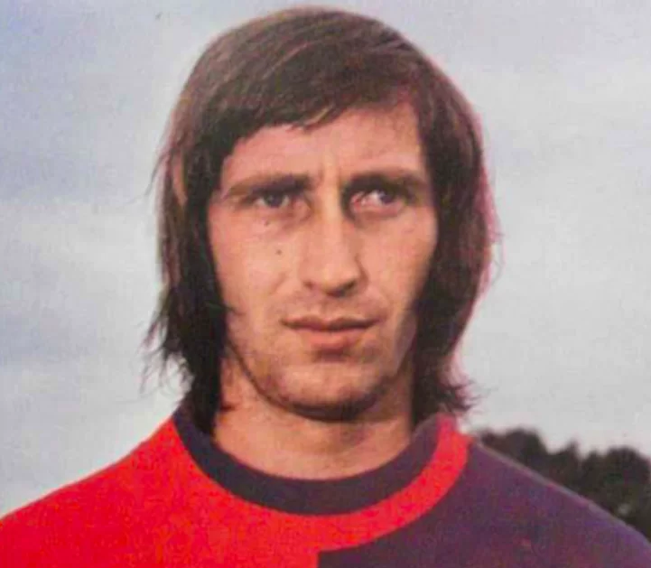 […] Il primo anno è subito vittorioso. […] Poi, un campionato in tono minore, quello del 73/74, tanto che gli arrivi di Roberto Rosato e Mariolino Corso, il ‘Piede sinistro di Dio’ e l’esordio di Roberto Pruzzo, non bastano ad impedire la ricaduta in Serie B.