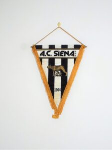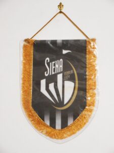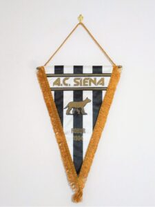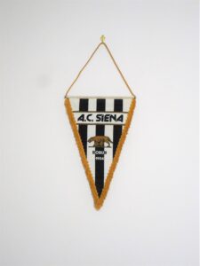 La palatura bianconera con l’iscrizione, in lettere color oro, della denominazione societaria rimane fino agli anni Settanta. Negli anni Ottanta e nei primi novanta i gagliardetti conservano analoghi lineamenti con l’aggiunta della cosiddetta “lupa senese.” Questo simbolo è riconducibile alla leggenda secondo cui Senio e Ascanio, figli del mitico Remo, fondarono la città. Negli anni 2000 il Siena rinnova i propri gagliardetti con un ancile palato in bianco e nero con la lupa e la denominazione storica Robur.