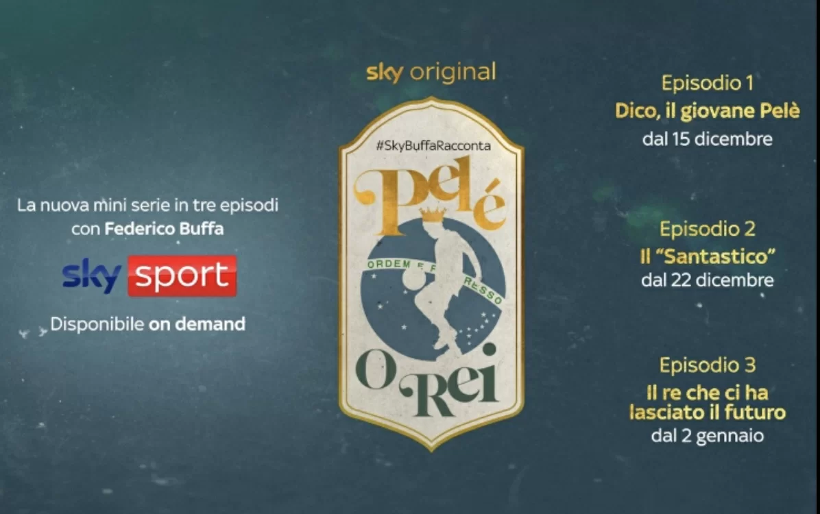 Dopo i docufilm dedicati alle bandiere del calcio azzurro, Gaetano Scirea e Gigi Riva, #SkyBuffaRacconta torna su Sky Sport per rendere omaggio con il suo tocco inconfondibile a uno dei personaggi più amati della storia del calcio, dentro e fuori dal campo. Federico Buffa dedica a Pelé il suo racconto di Natale: #SkyBuffaRacconta Pelé O REI. Una produzione originale Sky Sport in tre puntate per onorare Edson Arantes do Nascimento, uno dei più grandi giocatori di tutti i tempi, icona del calcio.