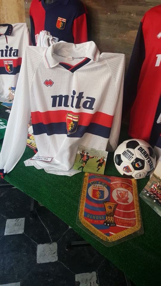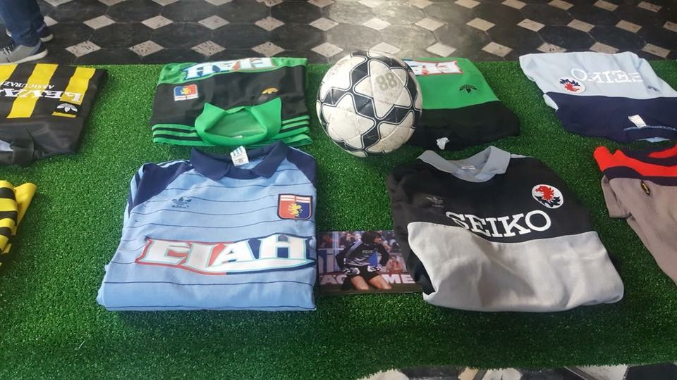 “Si potrà ammirare anche la splendida maglia di Juan Carlos Verdeal, una sorta di camicia, indossata dal calciatore nella tournée della squadra Rossoblù in America Centrale”, prosegue Andrea sempre più orgoglioso nel tono, “gara giocata a Città del Messico l’11 giugno del 1950 contro la Nazionale Messicana e terminata 3-1 per i padroni di casa. Il calciatore, pur non essendo più tesserato del Genoa, venne comunque aggregato alla spedizione. Ci saranno anche delle riproduzioni di alcune maglie degli anni ‘40 riprodotte a fine anni ’60, utilizzate per una mostra rievocativa in Germania sul connubio sport-nazifascismo: davvero una curiosità unica. Ovviamente ci saranno spille, gagliardetti, palloni, scarpini, figurine e oggettistica varia della squadra più antica d’Italia, un vero tuffo nella memoria”.