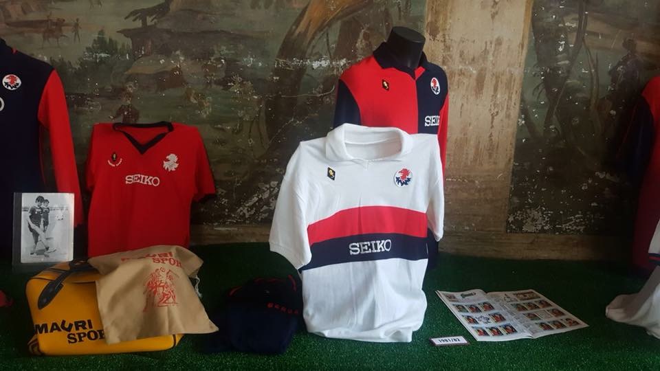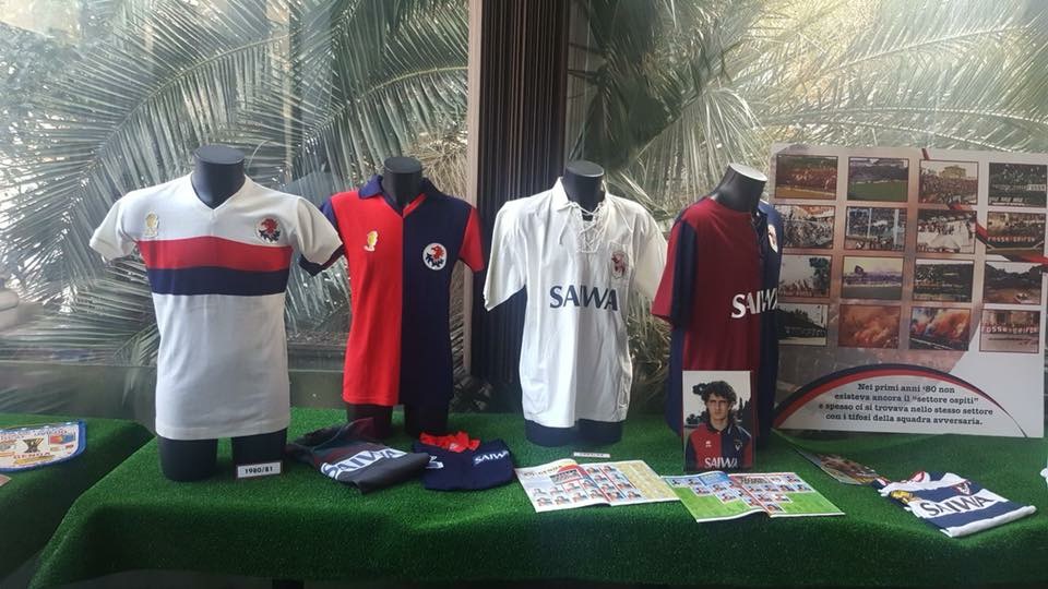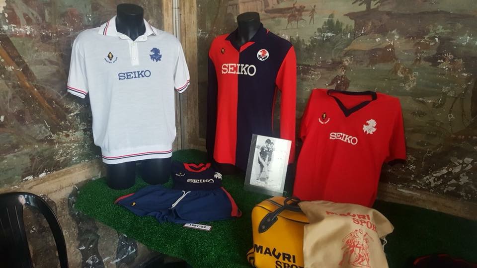 Chi avrà la possibilità di andare alla mostra potrà osservare da vicino tanti oggetti che hanno fatto la storia del club Rossoblù… “Ci sono in sostanza tutte le maglie dagli anni ’50 ad oggi”, ci dice Andrea con un tono di voce che non maschera la soddisfazione per quanto detto, “…si potranno ammirare dei pezzi pregiati, quali la maglia indossata da Julio Abbadie nella stagione 1956/57 o quella del 1964/65 appartenuta a Mario Da Pozzo”. Inoltre, aggiungiamo noi, anche quella con cui Andrea si è aggiudicato il primo posto alla manifestazione “I Colori del Calcio” di Livorno: la maglia di Franco Rivara della stagione 1967/68.