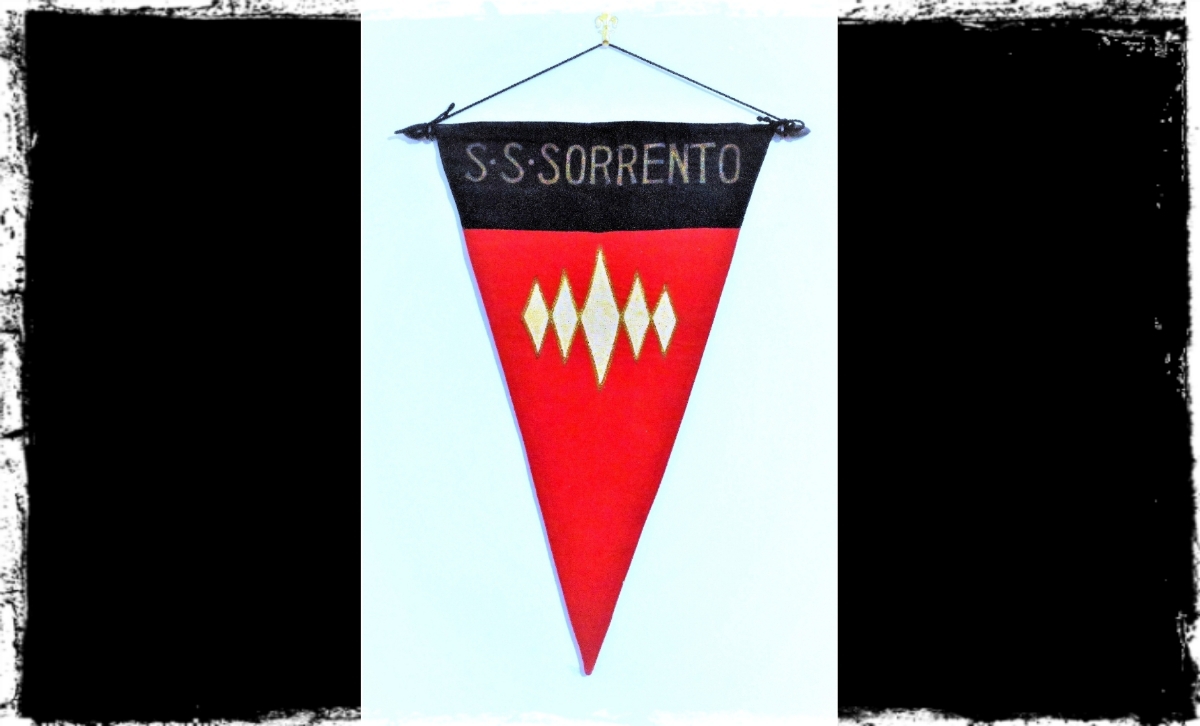 I gagliardetti dei rossoneri negli anni Settanta erano realizzati in versione stampata o ricamata e riportavano i cinque fusi d’argento presenti anche nelle insegne cittadine. Nel 1985 riportano la denominazione A.C. Sorrento insieme ad un pallone apposto su righe verticali rossonere e con al centro un pentagono con il disegno dei fusi. Due anni dopo in luogo del pallone compare uno scudo sannitico sempre con l’effige cittadina. Negli anni Novanta, invece, introdussero uno stemma che presenta la parte superiore nera con l’iscrizione del nome della società mentre nel basso i tradizionali fusi in campo rosso. Della stessa tipologia negli anni duemila realizzarono un gagliardetto ricamato a cui fa seguito, nella seconda metà degli anni duemila, un vessillo che riporta la coccarda tricolore a ricordo della conquista della Coppa Italia di Serie D.