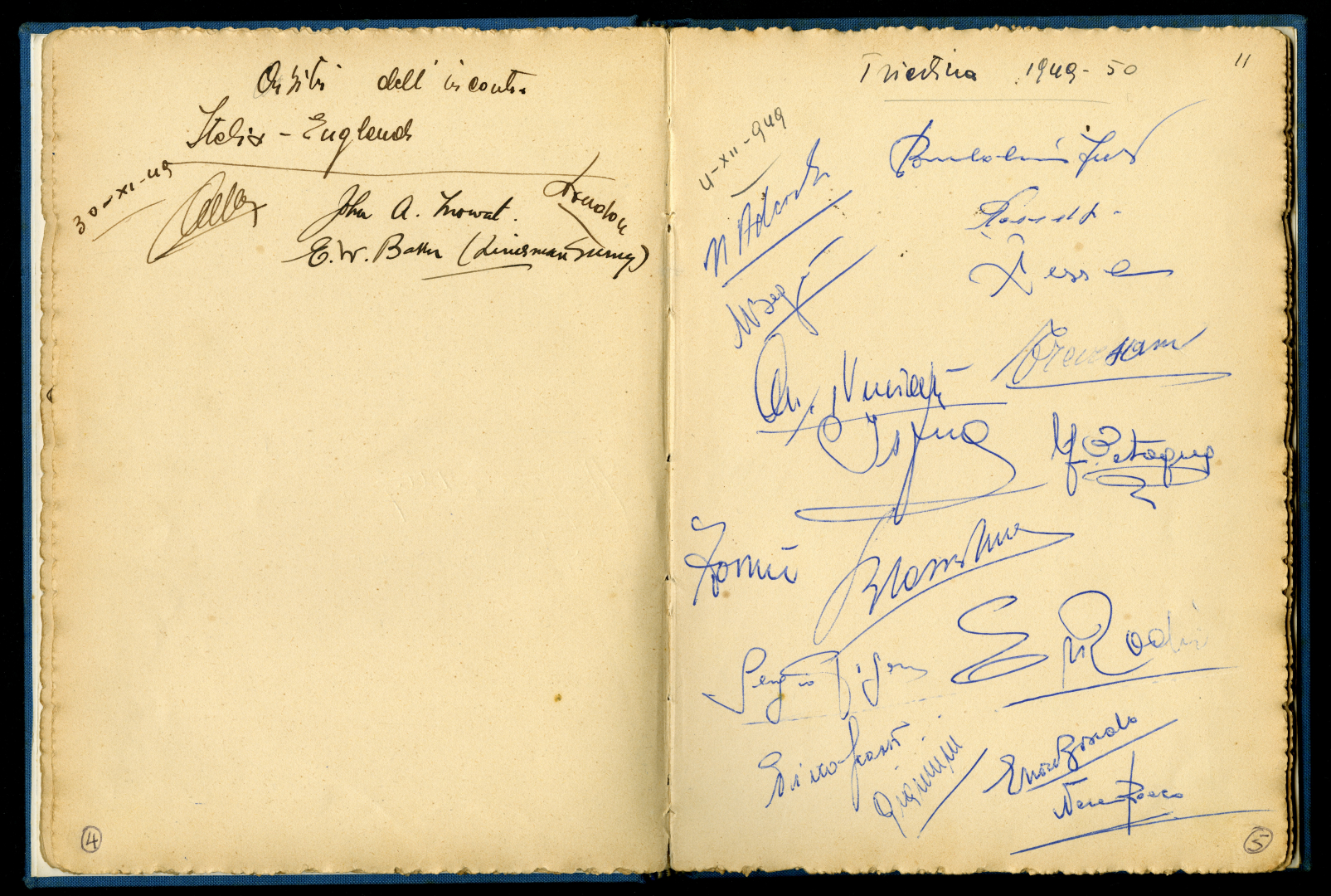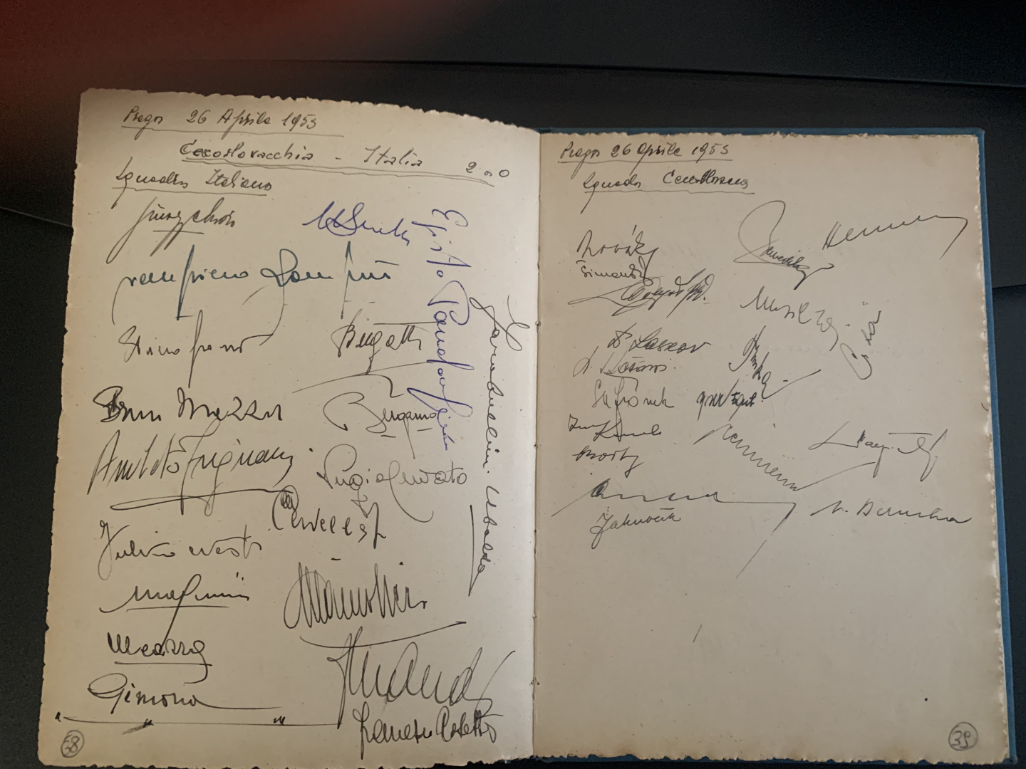 Beh un quaderno fantastico… con gli autografi impressionanti … i calciatori della nazionale inglese del ’49, la Roma del 1953 in tournee a Caracas, ma anche Corinthias, Barcellona, Caracas, Cecoslovacchia, Svizzera, Austria, Fiorentina, Bologna, Inter, Venezia, Padova, Pro Patria, Lucchese, Torino, Milan, Sampdoria, Triestina, Atalanta, Lazio, Palermo, Juventus, Roma. Firme quali quelle di Meazza e Zamora… e molte altre …