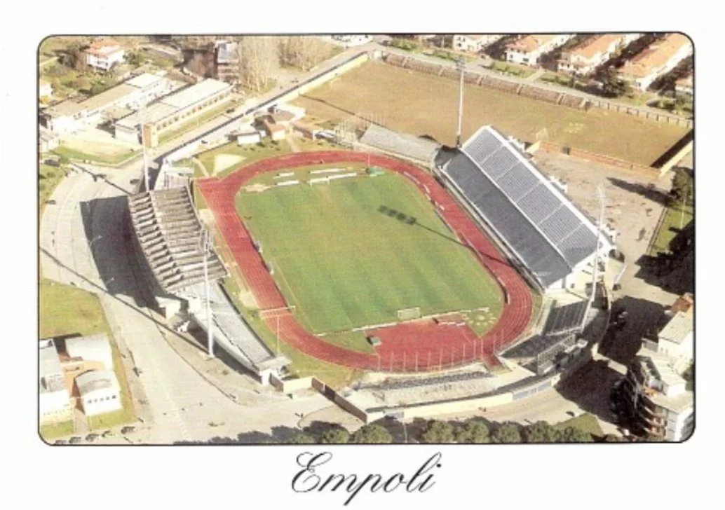 La prima gara ufficiale di Campionato che l’Empoli disputò al nuovo “Castellani” fu invece quella del 19 settembre 1965, Campionato di Serie C: Empoli – Cesena, risultato finale 0-0. […] Inizialmente lo Stadio aveva solo l’attuale Tribuna coperta con il sottotribuna e le due ali laterali scoperte. Diversi anni dopo fu costruita una tribunetta in tubi innocenti, tre, quattro gradini, dove si trova l’attuale Maratona.