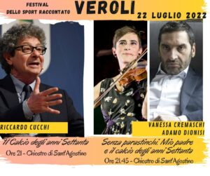Stasera la scaletta prevede “Il calcio anni ’70” raccontato da Riccardo Cucchi e “Senza parastinchi. Mio padre e il calcio degli anni settanta”, di Vanessa Cremaschi con la partecipazione di Adamo Dionisi.