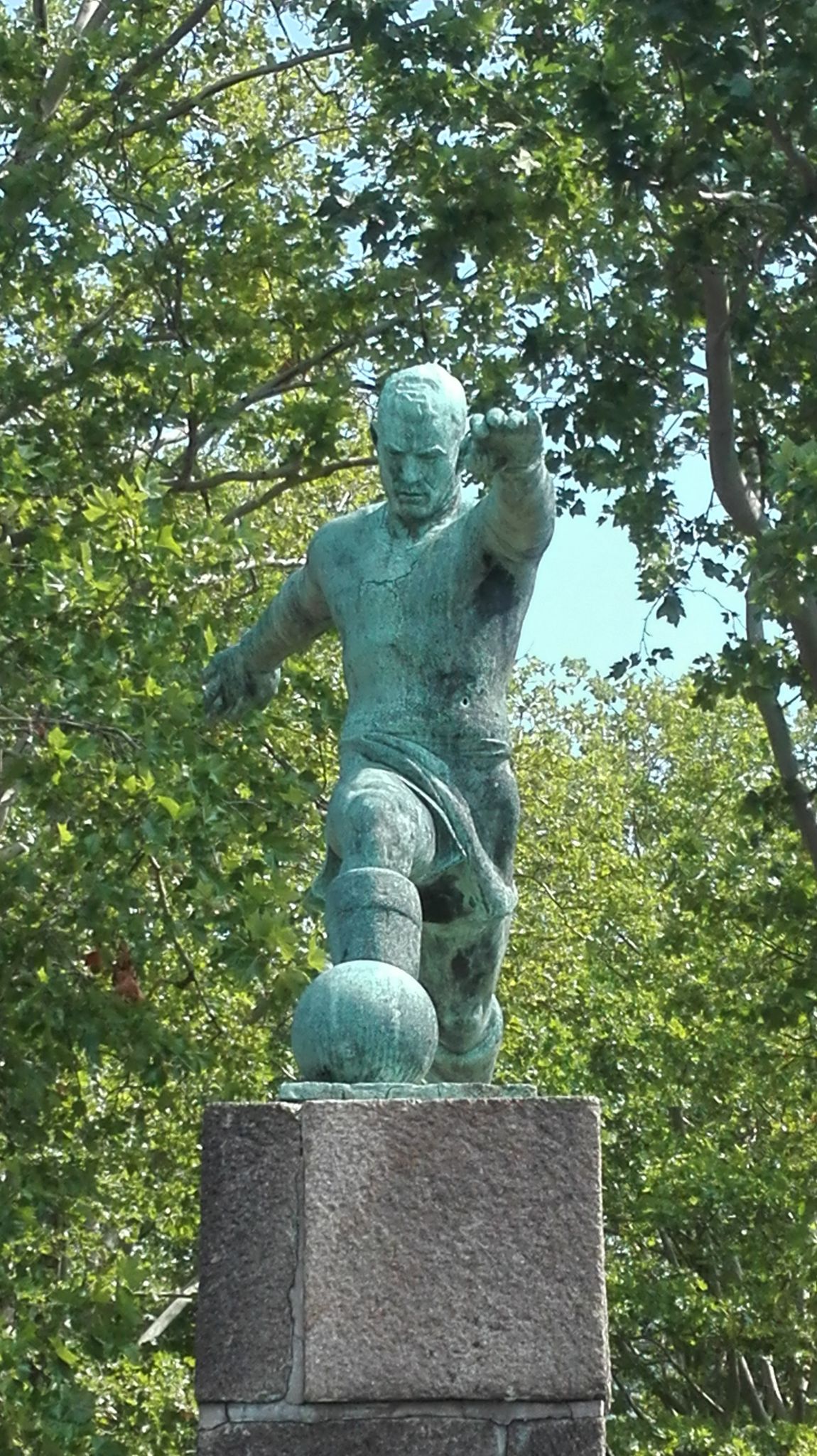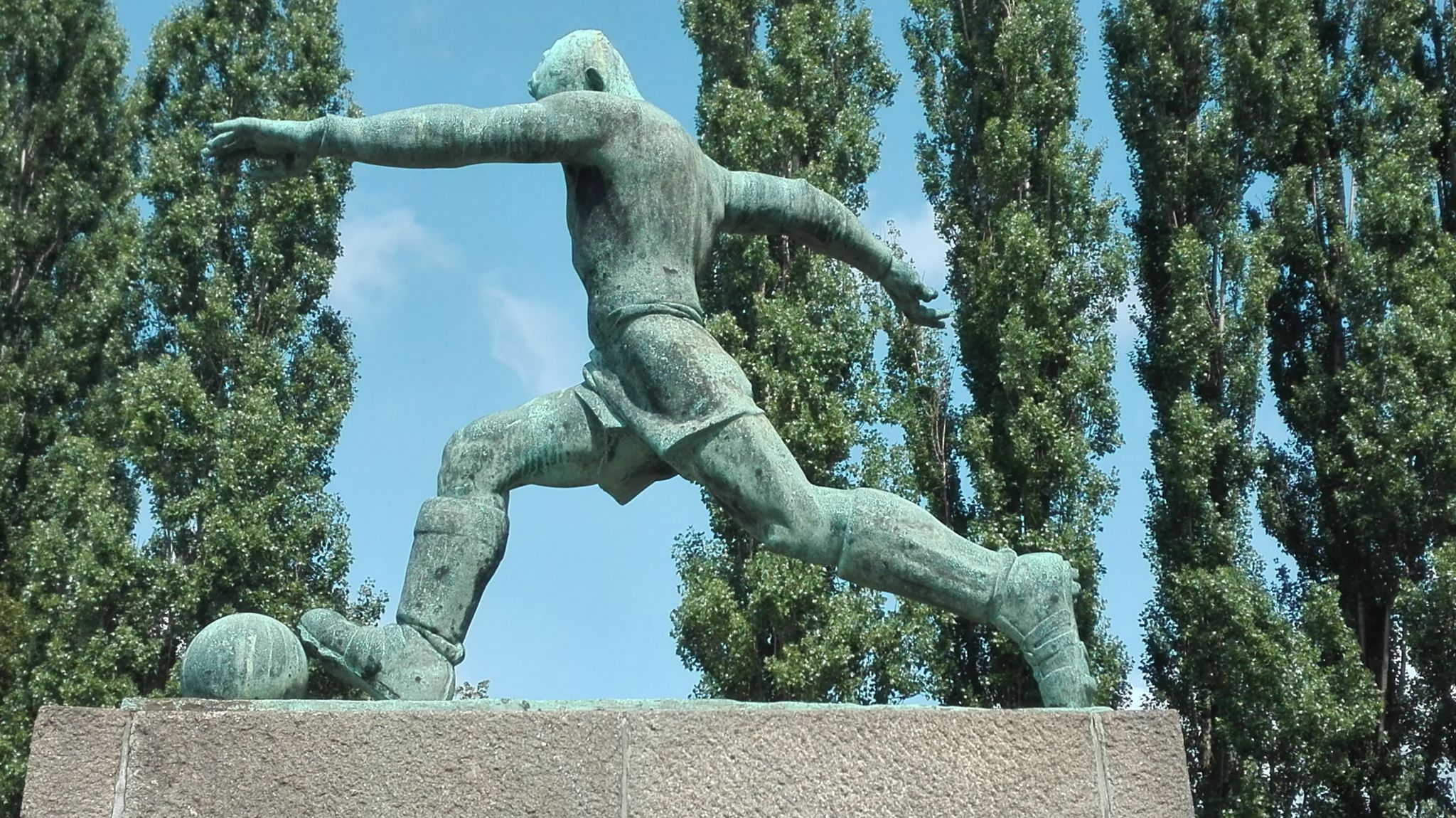 GLIEROIDELCALCIO.COM (Danilo Comino) – A Berlino, nel Friedrich-Ludwig-Jahn-Sportpark, si trova il più antico monumento al calcio della Germania: su un piedistallo in pietra di circa tre metri domina la statua di bronzo Stop in corsa dello scultore italiano Mario Moschi. Il luogo è uno dei più importanti per la storia del calcio a Berlino perché fu proprio qui che, negli anni Ottanta del secolo XIX, fece la sua prima comparsa questo sport importato dall’Inghilterra. La statua di Moschi raggiunse la sua attuale ubicazione nel 1937, in piena epoca nazista, ma fu creata in Italia nel 1932, quando il fascismo celebrava il suo decennale. Richiamiamo brevemente alla memoria il contesto culturale da cui proviene.