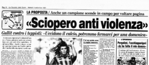 Ecco le sue parole in merito ai fatti accaduti ad inizio campionato (LA GAZZETTA DELLO SPORT del 3 settembre 1991: “Questo è un vero e proprio problema. Sulla violenza negli stadi mi farò promotore di un’iniziativa clamorosa: uno sciopero. Forse soltanto così i tifosi potranno capire che stanno uccidendo uno sport meraviglioso”