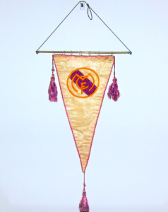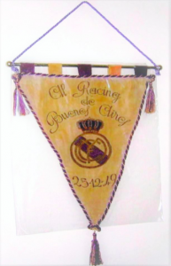 A seguire ed in particolare alla fine degli anni ottanta, i gagliardetti hanno lievissime varianti come quella riguardante i passanti che vengono realizzati nei colori bianco e viola come riportato nel labaro nella foto di seguito autografata dall’allenatore olandese Leo Beenhakker che fu alla guida delle merengues nel periodo 1986-1989 e nel 1992.