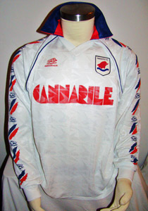 Niko ci racconta di un calcio che non esiste più: “Non esisteva materiale ufficiale all’epoca, c’era un negozio in città che si chiamava “Asso di Coppe” che produceva delle maglie con lo sponsor, la “Publiradio”, primo sponsor ufficiale della storia del Taranto e apparso nella stagione 1982/83. Allo stadio s’incontrava qualcuno con la maglia, ma erano quelle che qualche giocatore o qualche magazziniere aveva loro regalato. Intorno i diciotto anni le trasferte diventarono sempre più abituali per me e, con la squadra che regalava qualche gioia, ci venivano lanciate le maglie in curva a fine partita, un grande classico. A quel punto mi venne la fissa per la maglia, una sorta di bottino di guerra per me. Le mettevo allo stadio, le sfoggiavo, mi piaceva. Poi ho cominciato invece a ritenere questo gesto come una sorta di sacrilegio. Allora ho cominciato a conservarle in un armadietto nella mia stanza, piegate, imbustate… amate, accarezzate e coccolate. Iniziava quel meccanismo dal quale non sono più uscito e cioè quello di recuperare le maglie appunto, di collezionare. Le chiedevo a tutti, conoscenti, parenti, amici. Una corsa sfrenata cercando di accaparrare tutto ciò che capitava. Poi, con il tempo, si arriva a un bivio: o abbandoni o decidi di passare al livello successivo. Io decisi di aumentare il livello. Cominciai a cercarle in modo mirato, quasi scientifico. Iniziarono però anche le difficoltà, perché ci si cominciava a scontrare con il meccanismo del lucro e la follia di alcuni personaggi. Aumentò anche lo stress e il pressing che facevo alle persone che sapevo avevano la maglia che stavo cercando. Mi ricordo una volta che stavo in macchina con mia moglie e passammo davanti ad un centro sportivo, dove stavano giocando a calcetto. C’era un ragazzo con una maglia che mi sembrava interessante. Ho parcheggiato lasciando mia moglie in macchina, sono salito di corsa sulle scale, poi di corsa verso gli spogliatoi per arrivare al campo dove ho fermato la partita per parlare con quel ragazzo: mi resi conto che era una normalissima maglia da negozio. Mi hanno preso per pazzo. Poi ho fatto anche qualche altra pazzia, come quando ho trovato la Pouchain del 1981 e l’ho pagata … va beh non lo dico.”