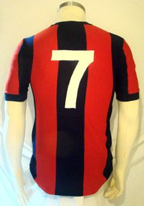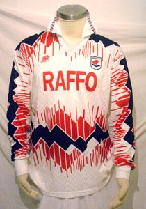 “Belle e rare sono anche le maglie anni ‘60, in particolare ne ho due della stagione 1968/69 appartenute a Giuseppe Malavasi e, quella bianca, a Nando Di Stefano. Spettacolari!! Mi piacciono poi molto le UMBRO anni ’70, in particolare quelle a maniche lunghe”.