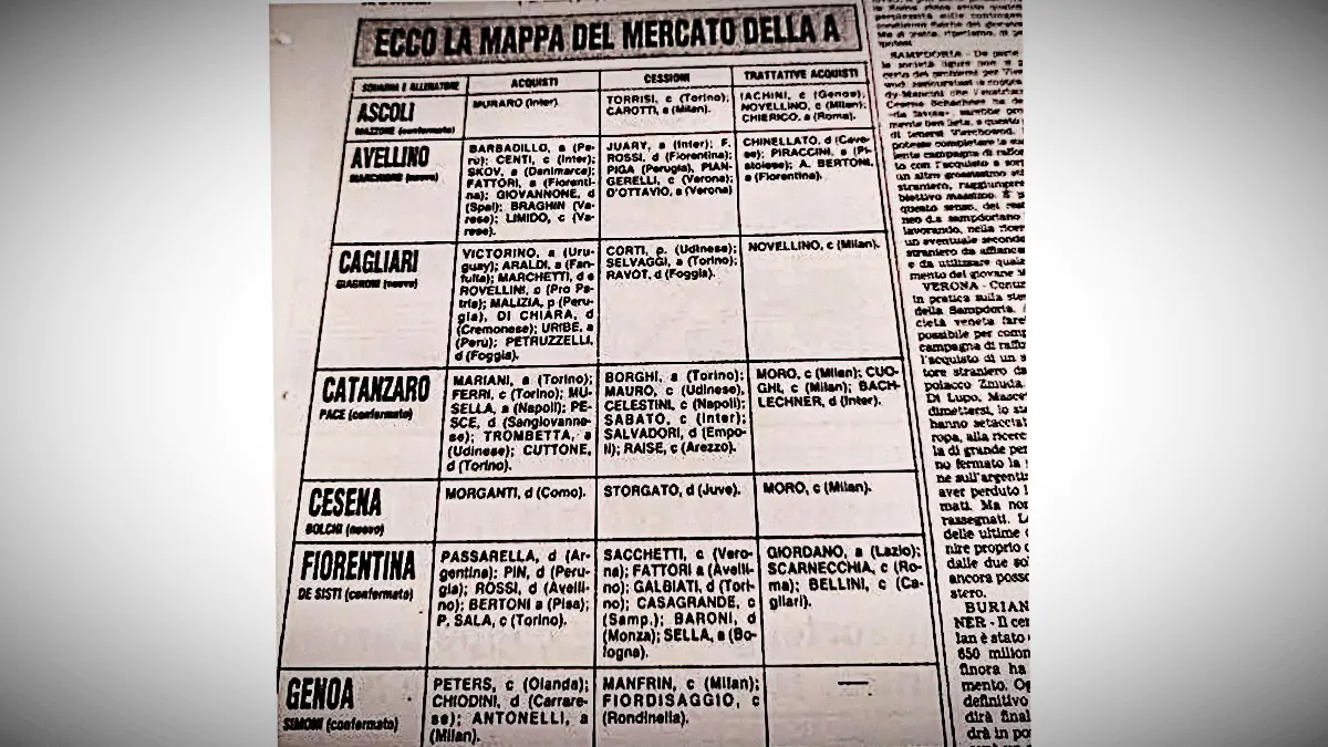 Un’epoca diversa, dove anche in ferie gli appassionati più fervidi attendevano l’apertura dell’edicola per vedere sulla Rosea o sugli altri quotidiani sportivi gli ultimi movimenti, speranzosi di poter finalmente trovare il giocatore inseguito nel rettangolino della squadra del cuore.