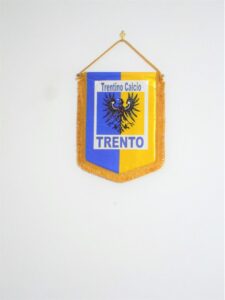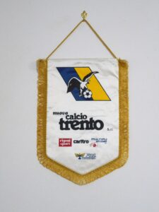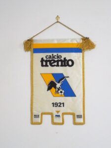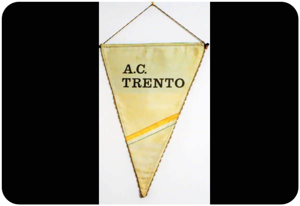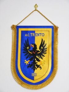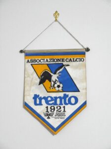Dalla fusione tra due società locali nasce, nel 1921, l’Associazione Calcio Trento. Il Trento ha disputato, oltre al campionato di Prima Divisione nella stagione 1928 – 1929, diverse stagioni nei campionati equiparabili all’attuale Serie C e in aggiunta ulteriori nove in serie C2. I vessilli trentini hanno costantemente riportato il giallo e blu nonché l’aquila o più precisamente l’aquila di S. Venceslao simbolo ufficiale della città di Trento a partire dal 1407. Relativamente ai gagliardetti negli anni settanta avevano il bianco come colore prevalente e una fascia trasversale gialloblu. Negli anni ottanta e novanta presentano un nuovo stemma con un’aquila ad ali aperte e un artiglio poggiato su un pallone. Alle spalle del rapace due diagonali gialloblu mentre nella parte inferiore dei gagliardetti erano riportate le iscrizioni e gli stemmi delle aziende sponsor e sostenitrici del Trento Calcio.