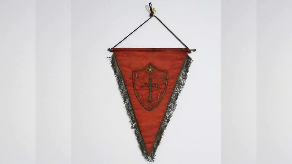 La leggenda dell’Unione inizia nel 1918 con la fusione tra il Football Club Trieste e il Circolo Sportivo Ponziana. La squadra ha nell’alabarda e nel rosso i suoi simboli essenziali che ne hanno accompagnato le imprese sportive negli anni in cui la Triestina era una presenza stabile nella serie A (ben ventisei stagioni disputate nella massima categoria) e nei periodi più bui trascorsi nei dilettanti dopo il fallimento. Negli anni Quaranta e Cinquanta i gagliardetti erano in versione ricamata. Riportavano uno scudo con al vertice una stella che irradiava raggi di luce nonché l’alabarda di S. Sergio, simbolo tutt’oggi conservato a Trieste e presente anche nella bandiera e nel gonfalone cittadino.