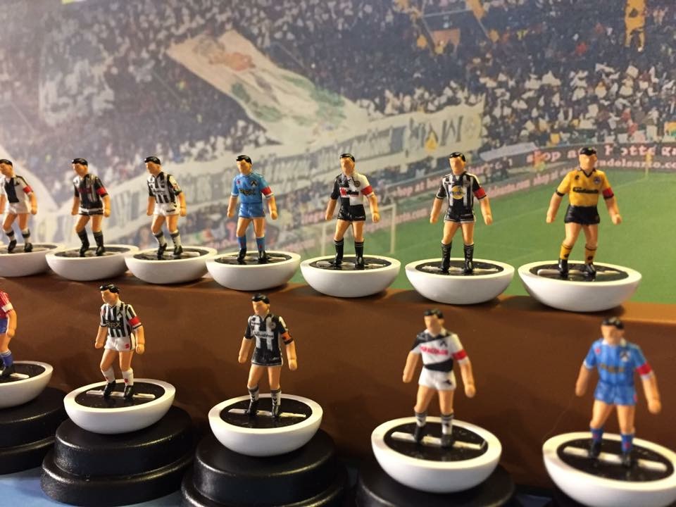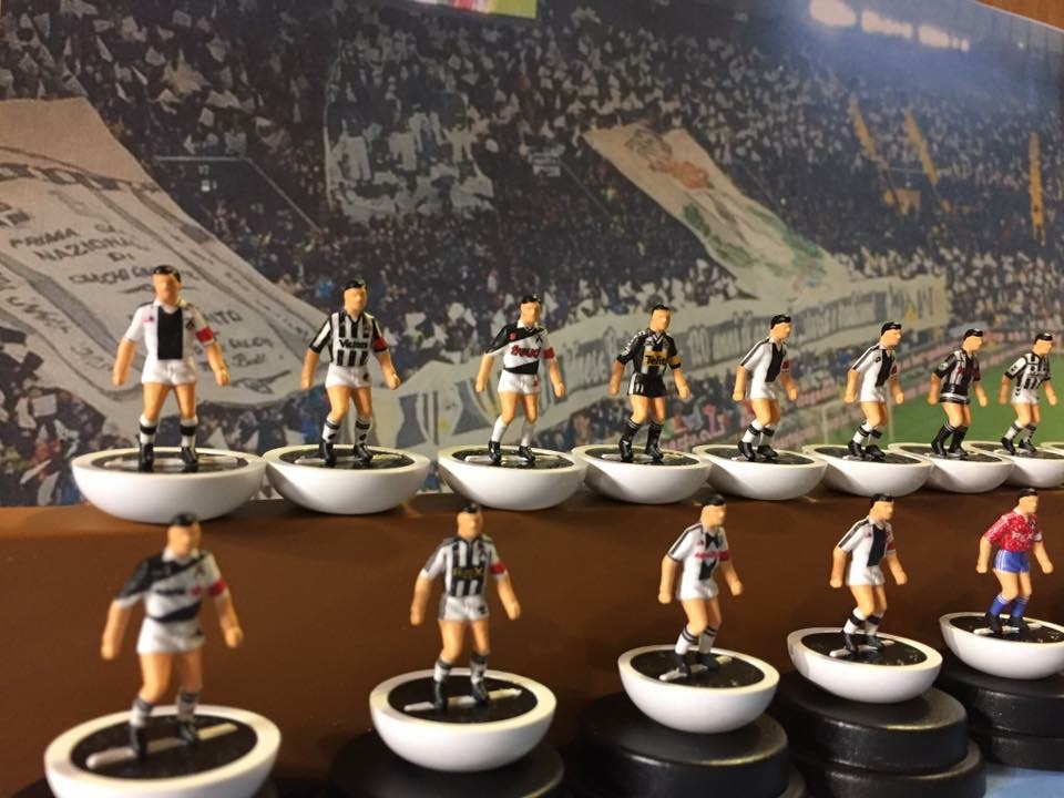Il nostro amico poi si sofferma su una “sezione” molto particolare della sua collezione…”Si tratta di qualcosa di unico nel suo genere, firmata subbuteo. Dal 1896, anno di nascita dell’Udinese, e sino ad oggi, ho conferito incarico a un maestro di Firenze di ricreare, fedelmente in ogni particolare, un giocatore del Subbuteo per ogni stagione sportiva con la maglia della società friulana. Inoltre, ho fatto creare altre “pedine” con le seconde, terze e maglie speciali, nonché i palloni particolari e storici utilizzati dalla squadra. Ora possiedo una preziosissima e unica “storia della maglia” dell’Udinese in versione subbuteo. Credo davvero di essere l’unico collezionista in Italia a possedere una simile raccolta. Chiaramente nei prossimi anni la collezione sarà aggiornata con la creazione di nuovi “calciatori” che vestiranno le nuove maglie”.