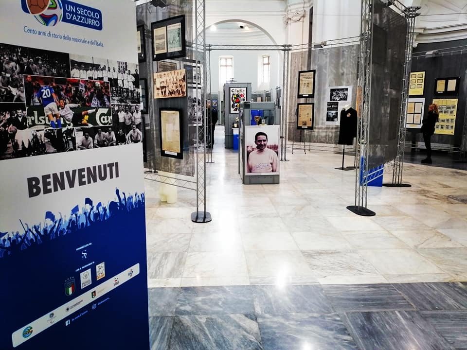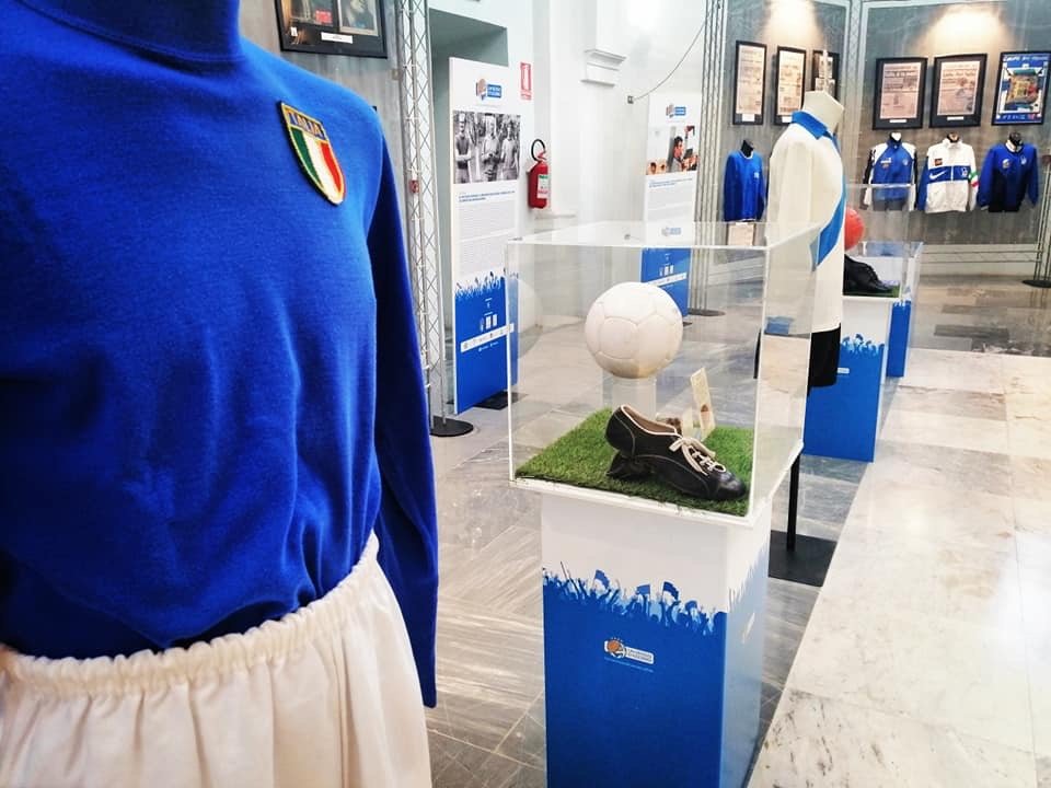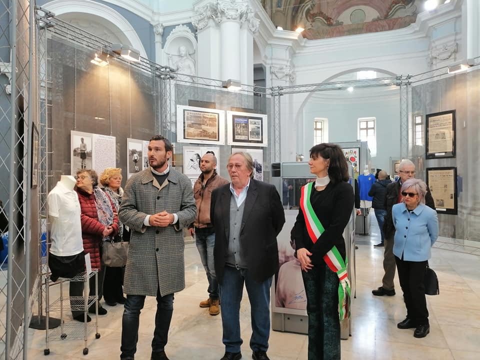 Una location di prestigio, l’ex chiesa di Santa Chiara in corso Libertà, per la mostra antologica curata da Mauro Grimaldi e promossa dall’Associazione Sant’Anna e con il patrocinio della FIGC. La mostra ripercorre la storia e le gesta della Nazionale italiana di calcio e ne celebra i successi relativamente ai suoi primi cento anni con oltre 200 cimeli originali e alcune riproduzioni fedeli come ad esempio la Coppa Rimet andata purtroppo persa negli anni ‘80 in Brasile.