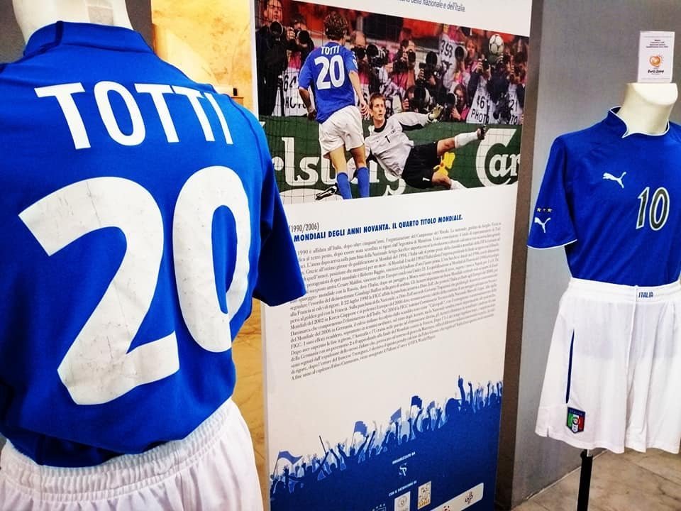In bacheca anche le riproduzioni delle due Coppe Rimet del 1934 e del 1938 e quelle del Mondo conquistate dagli Azzurri nel 1982 e nel 2006. Si può ammirare anche la maglia numero 18 indossata da Roberto Baggio nel match contro la Francia ai Mondiali del 1998, e la 20 del celebre “cucchiaio” di Francesco Totti a Van der Sar nella semifinale di Euro 2000 contro l’Olanda. Ma anche le maglie di Paolo Rossi, di Paolo Maldini, di Luciano Spinosi, di Stefano Tacconi.