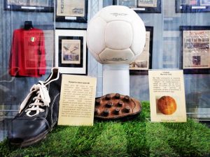 Maglie, tute, palloni, scarpini, quotidiani, tessere, biglietti, poster, locandine e documenti dell’epoca come quello del 1854 sulla nascita del calcio, impreziosiscono una mostra dal forte ed unico sapore di storia e leggenda.