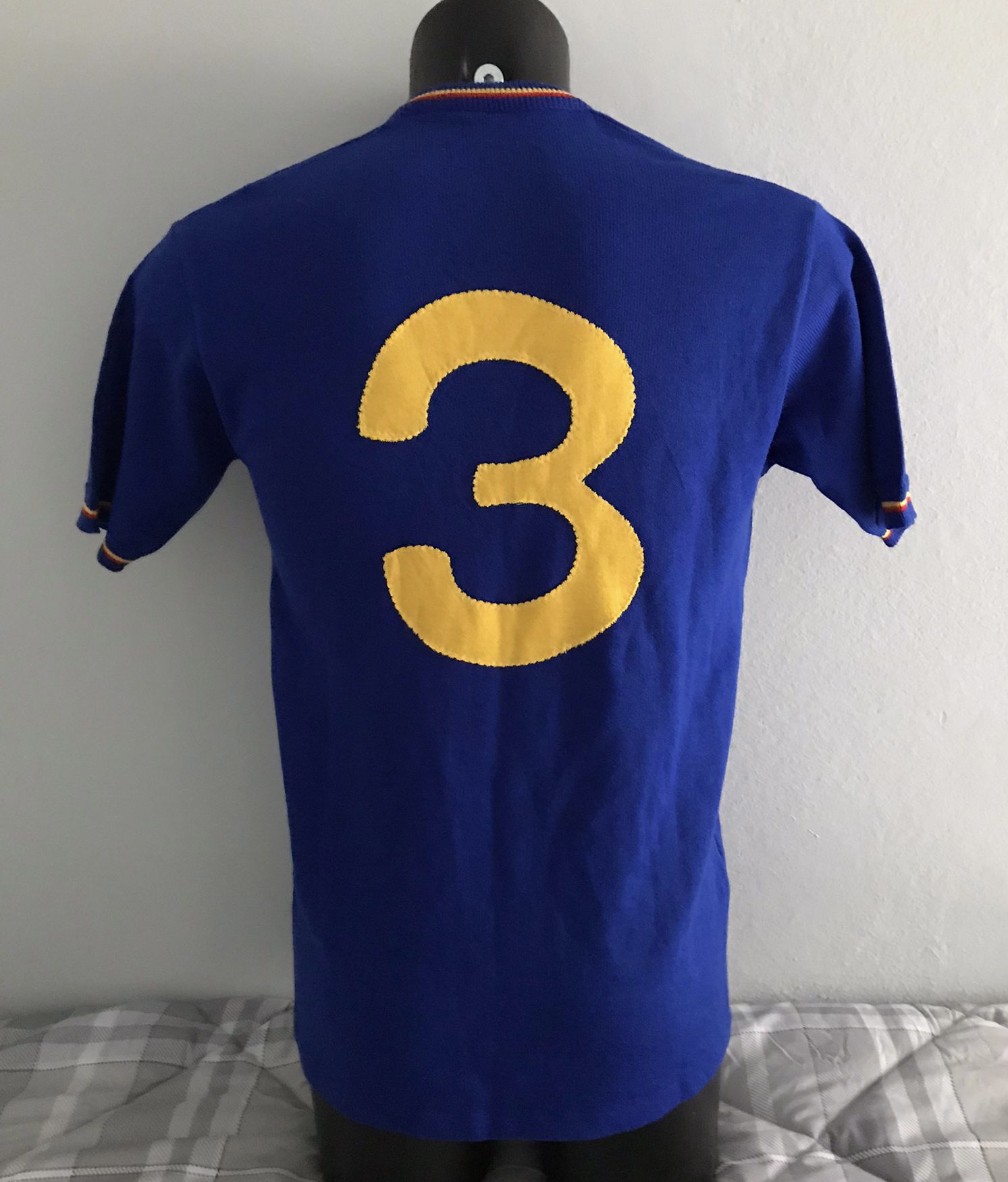 Questa blu è la terza maglia che fu usata in quella stagione solo in occasione di un’amichevole a Cosenza (vedi foto per la quale ringrazio l’amico Luca Feroleto del Museo del Catanzaro Calcio) e potrebbe essere stata usata anche nella stagione successiva con la toppa Unicef dalla prima squadra (in foto la partita Vierchowod e Bivi durante Roma-Catanzaro) o anche dalla formazione Primavera: infatti la maglia reca segni di una toppa poi rimossa successivamente.