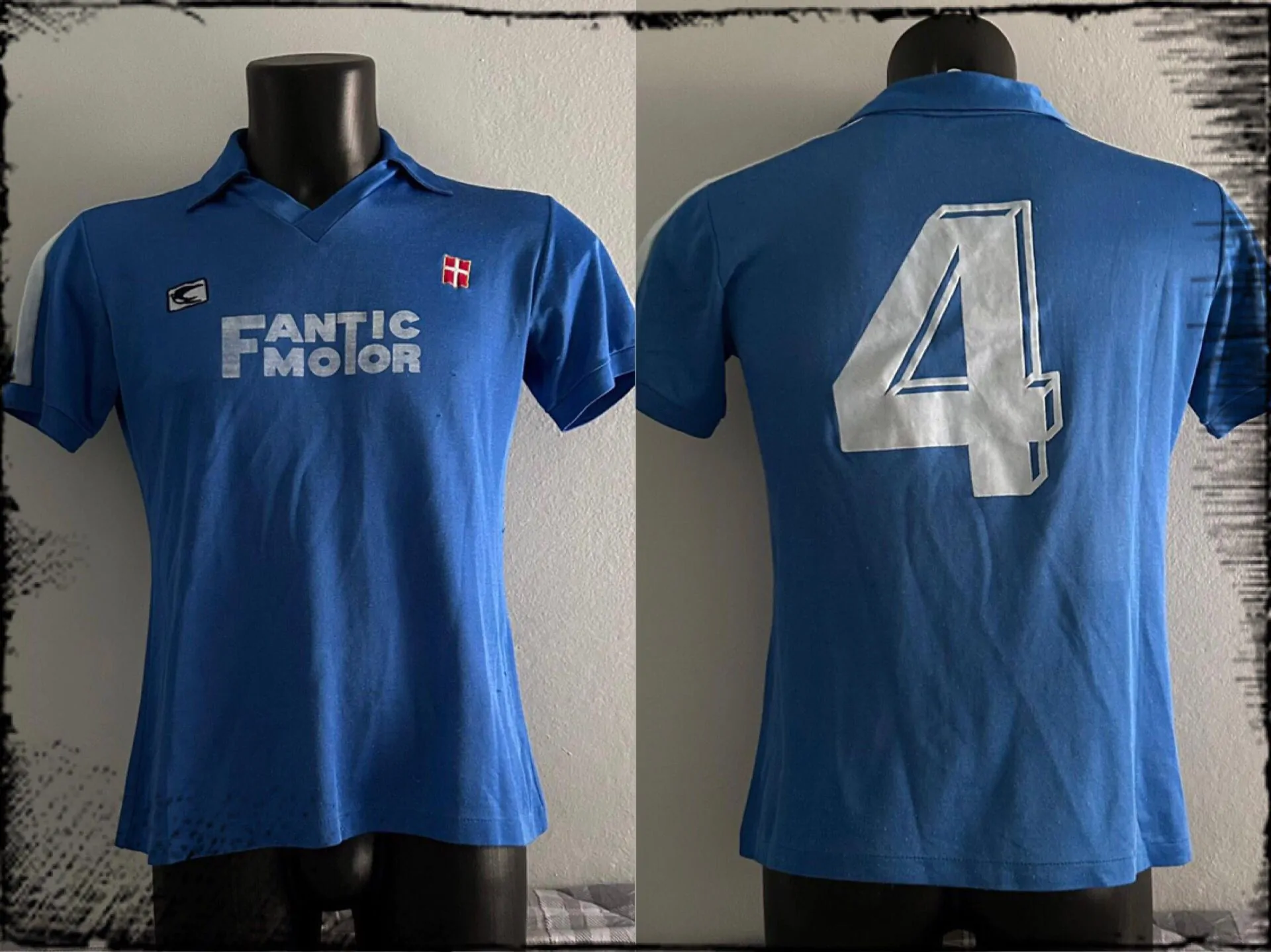 Oggi presento una bella e rara maglia del Como. Si tratta della prima della stagione 1981-82 in cui compare per la prima volta lo sponsor commerciale sulle divise biancoblu, la Fantic Motor. Un’azienda motociclistica che in quel periodo aveva sede a Barzago in provincia di Como. Ora invece fa parte della provincia di Lecco.