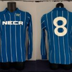 La particolarità e la bellezza di questa maglia risiedono molto anche nel numero sul retro, interamente e artigianalmente ricamato nel tessuto della maglia. E’ una peculiarità che ritroviamo in poche altre maglie degli anni Ottanta dei club italiani, fra cui quella della Fiorentina 1982/83 con sponsor JD Farrow’s.