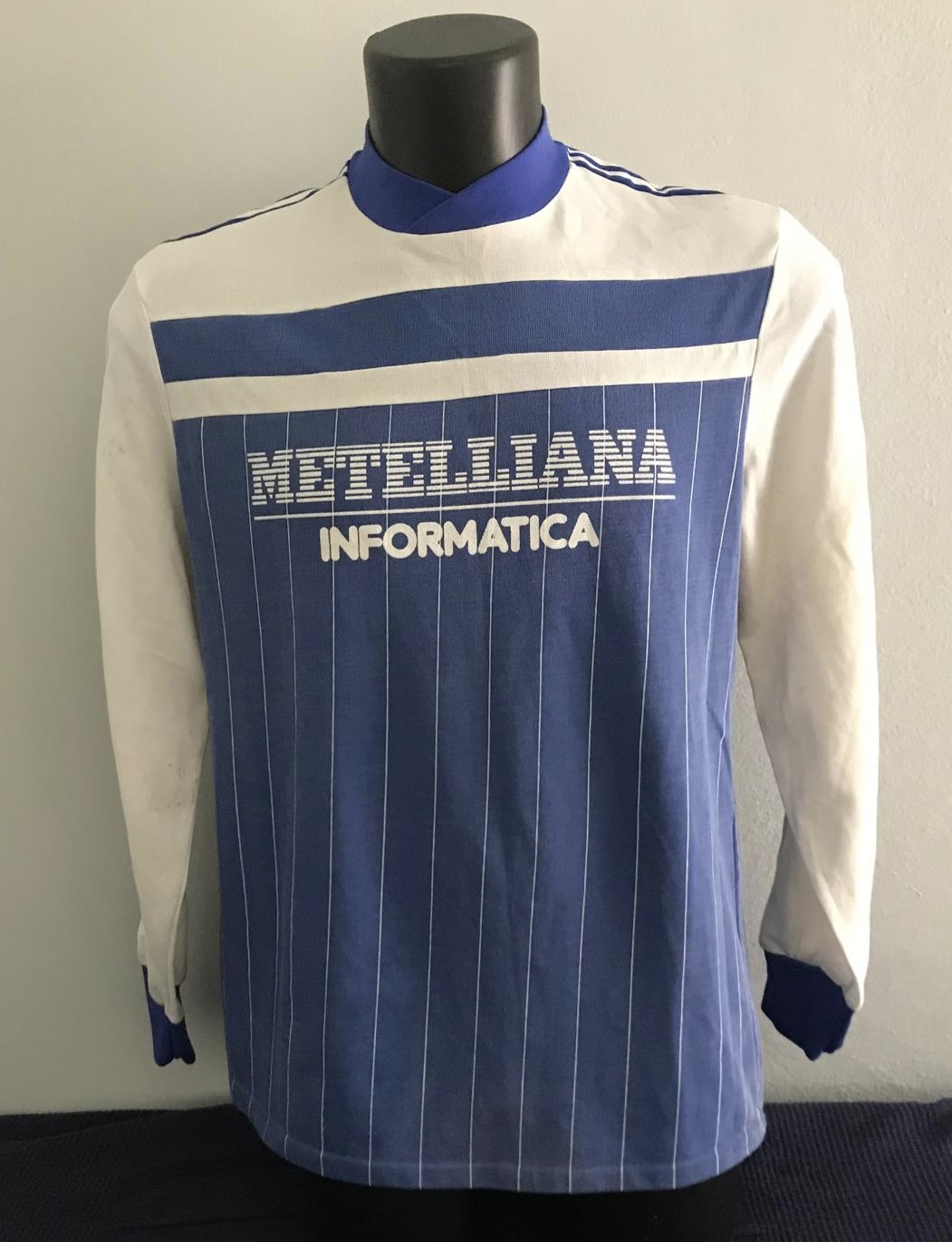 La maglia è un modello invernale, una Adidas a manica lunga con le righe verticali su sfondo blu e una banda bianca orizzontale: questo stesso modello fu utilizzato anche da altre squadre come il Bari, il Monza (a manica corta) e il Varese; questa versione fu utilizzata dalla Cavese solamente a manica lunga. Come anticipavo e come si può vedere dalle foto, la maglia è parecchio usurata: non solo il numero ma anche il trifoglio Adidas è scomparso. Ciononostante, aver trovato questa maglia ed aggiungerla alle altre due a manica corta in mio possesso è stato davvero complesso dato che queste maglie venivano poi girate alle giovanili e per la loro struttura si rovinavano dopo molti lavaggi e venivano poi dismesse.