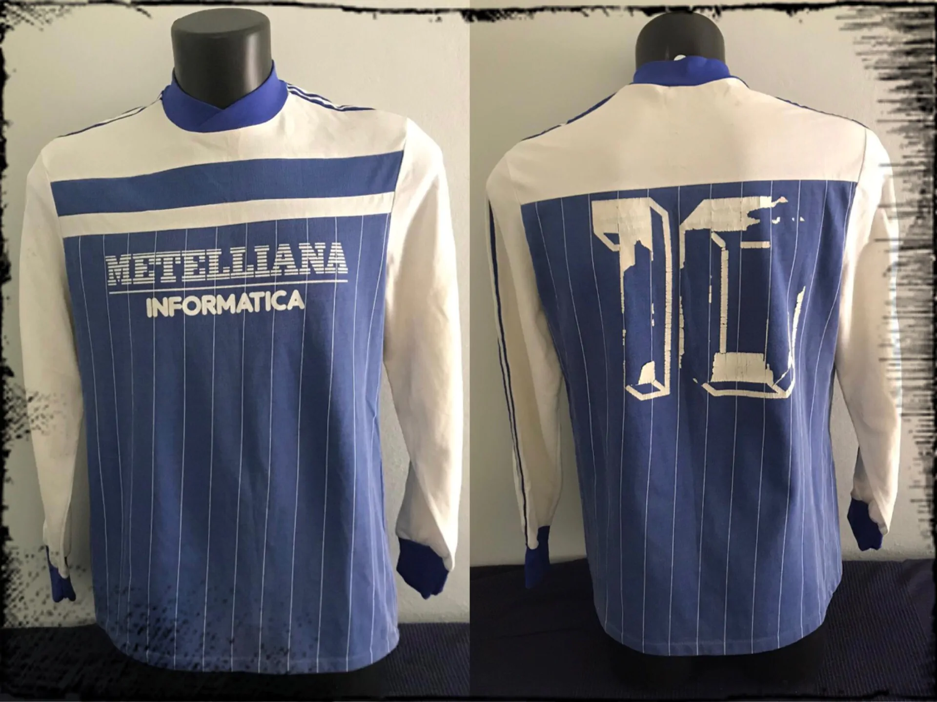 La maglia è un modello invernale, una Adidas a manica lunga con le righe verticali su sfondo blu e una banda bianca orizzontale: questo stesso modello fu utilizzato anche da altre squadre come il Bari, il Monza (a manica corta) e il Varese; questa versione fu utilizzata dalla Cavese solamente a manica lunga. Come anticipavo e come si può vedere dalle foto, la maglia è parecchio usurata: non solo il numero ma anche il trifoglio Adidas è scomparso. Ciononostante, aver trovato questa maglia ed aggiungerla alle altre due a manica corta in mio possesso è stato davvero complesso dato che queste maglie venivano poi girate alle giovanili e per la loro struttura si rovinavano dopo molti lavaggi e venivano poi dismesse.